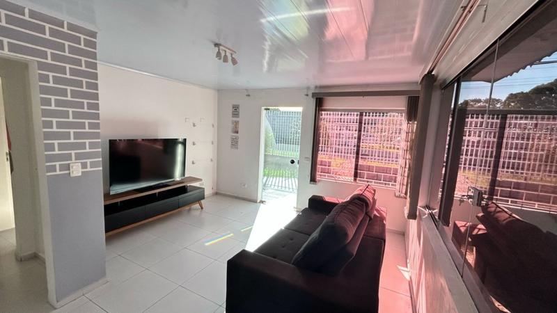 Contando ainda com garagem coberta para 2 carros de pequeno porte e estacionamento para mais ou menos 5 carros.