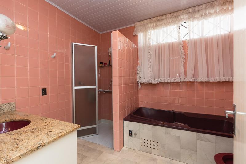 03 Banheiros principais, incluindo um banheiro de serviço com box, armário, vaso, pia e espelho, garantindo praticidade para equipes e clientes.