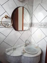 Possui 6 salas com armários, sendo 1 suíte, banheiro social, lavabo e cozinha com armários, mesa e fogão.
