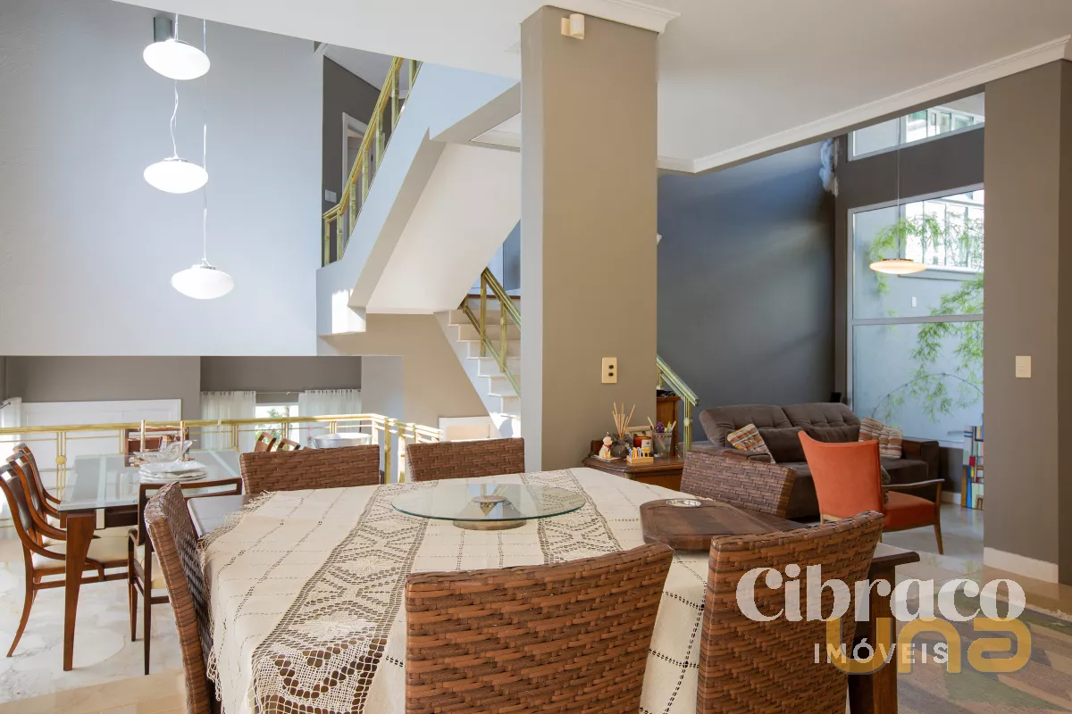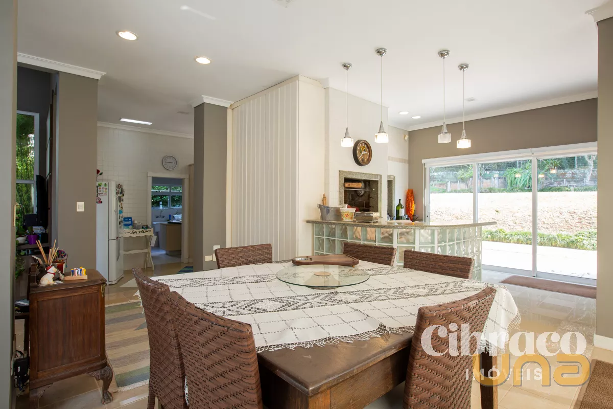 Está distribuído entre Sala de estar íntimo com lareira, lavabo decorado, sala de jantar integrada ao home theater e espaço goumet com churrasqueira e passa prato para cozinha, ainda conta com um banheiro social.