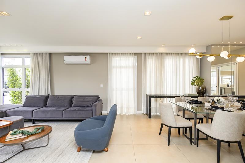 Ótimo acabamento, duas vagas de garagem, área de churrasco com teto retrátil, cozinha com móveis planejados e sala de estar ampla.