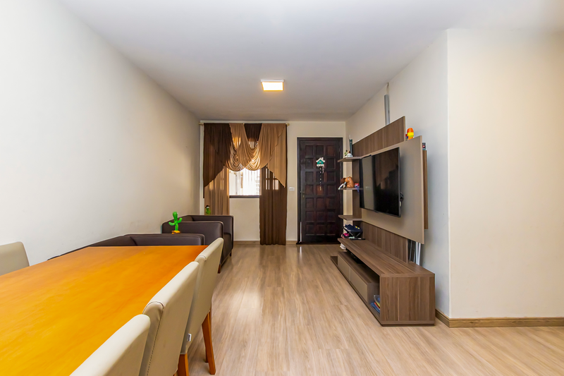O imóvel conta com três quartos, um banheiro social amplo com hidromassagem, sala para dois ambientes, cozinha e churrasqueira, além disso conta com duas vagas de garagem coberta e um amplo terraço.