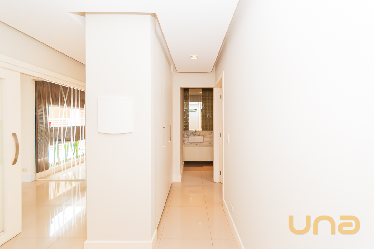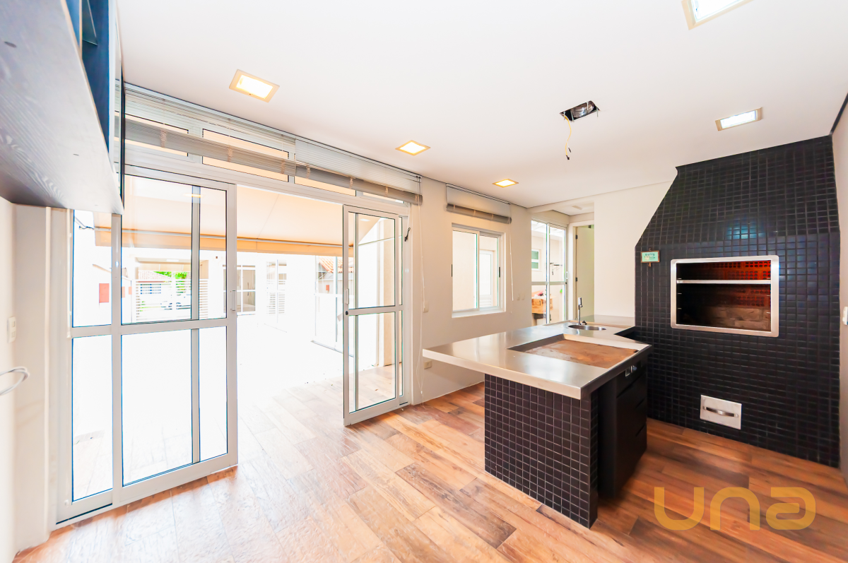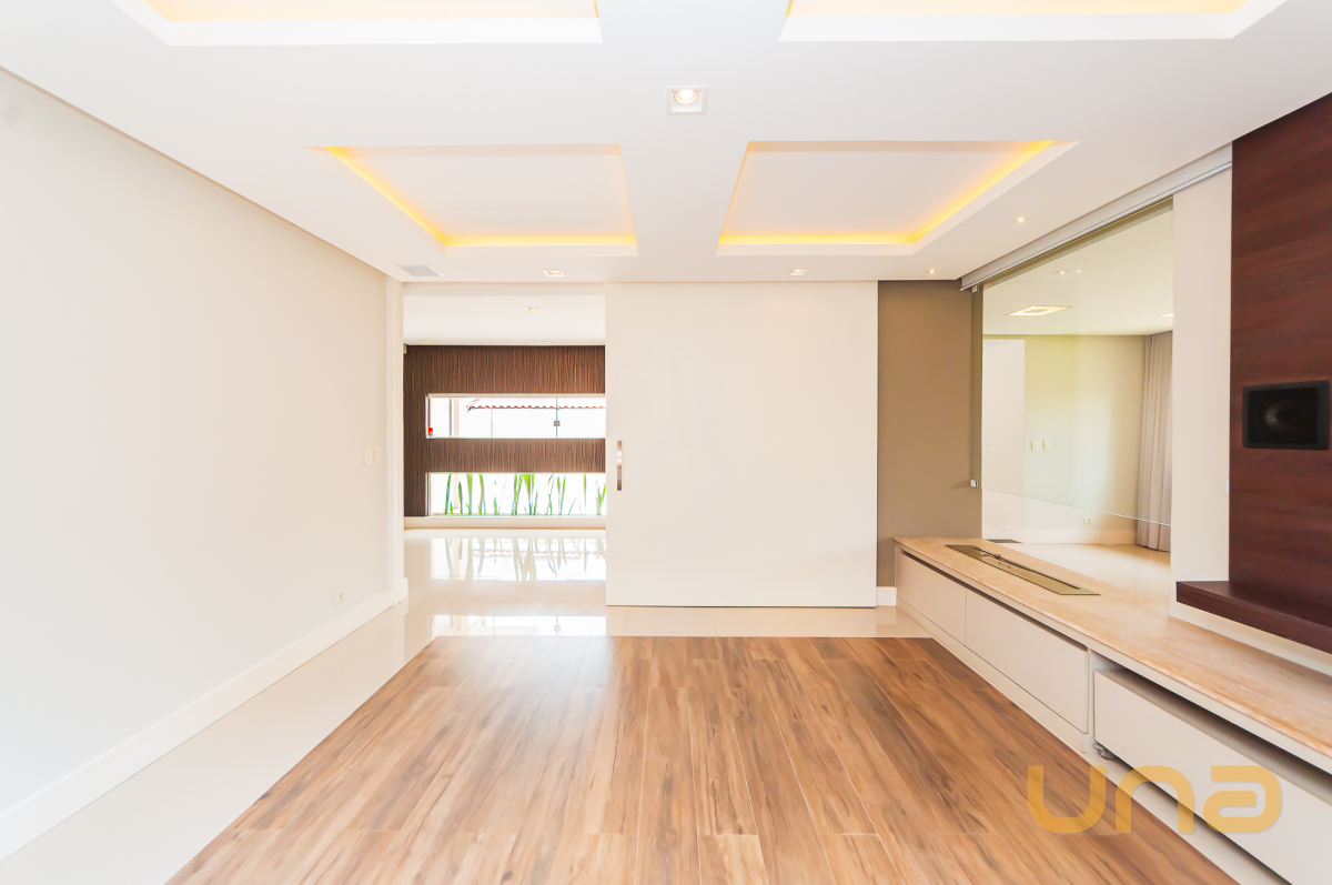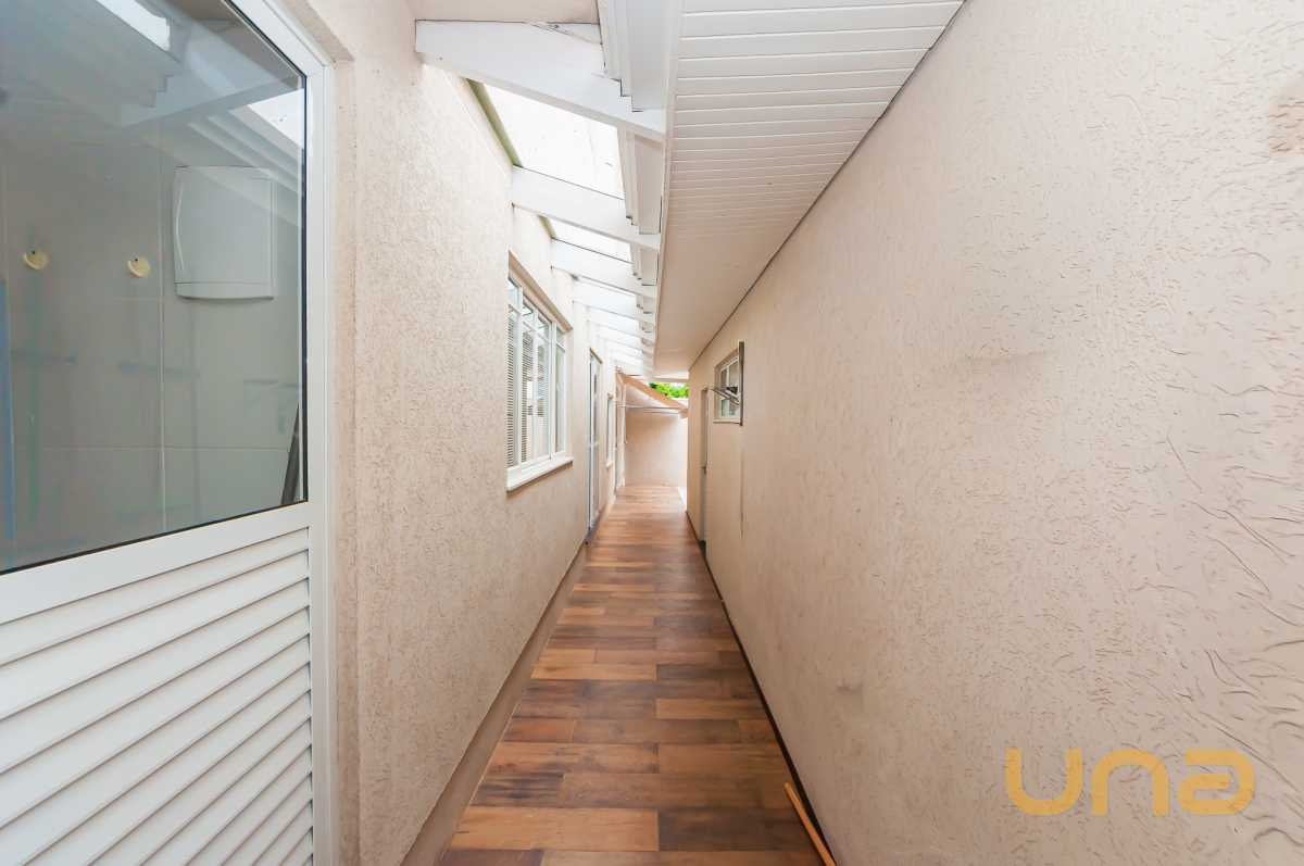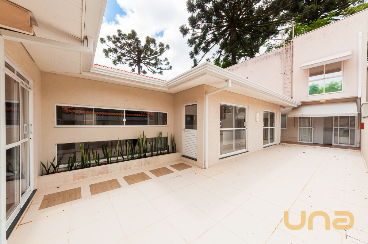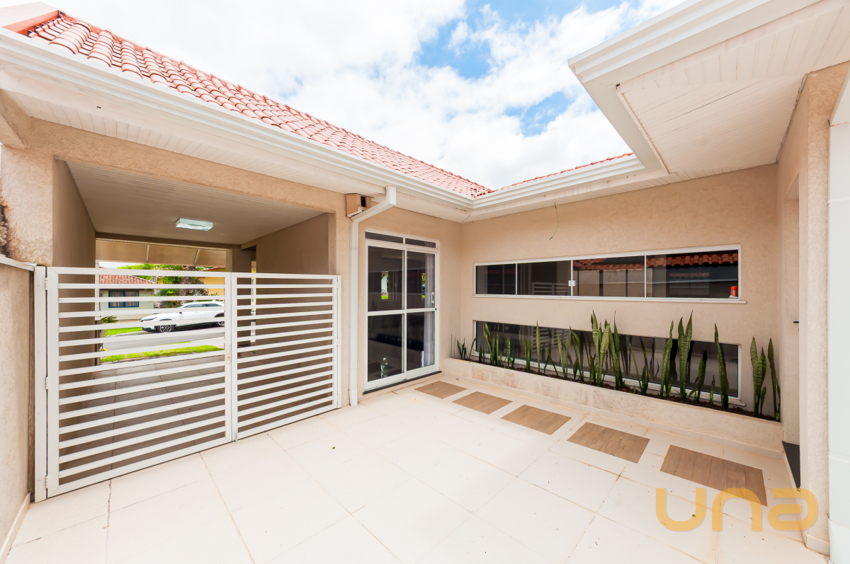 Residência térrea, desocupada, localizada na Planta Vila Romana (Associação de moradores), Av. Manoel Ribas, 8595 – bairro Santa Felicidade, com aproximadamente 270 m² (sendo 121,65 m² averbados ), distribuídos em 4 dormitórios (sendo 3 suítes – 2 no piso superior da edícula), salas de estar, jantar e tv, lareira a álcool, lavabo, banheiro social, ampla cozinha com armários planejados com bancada em pedra corian – branca e sem emendas, ar-condicionado, coifa, edícula em 2 pavimentos, no térreo lavanderia, um salão de festas com churrasqueira, bancada em inox, lavabo, espaço para um escritório com armários, e piso superior com as 2 suítes.