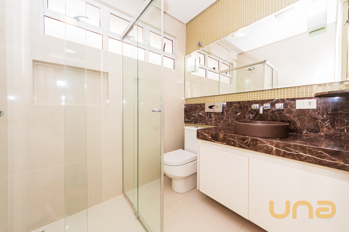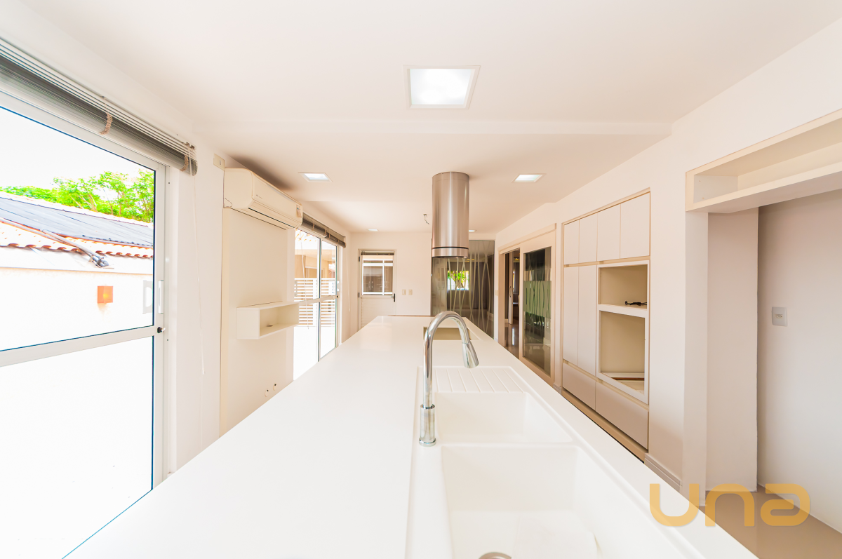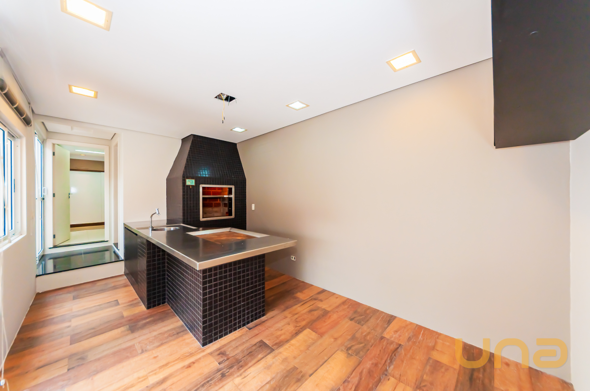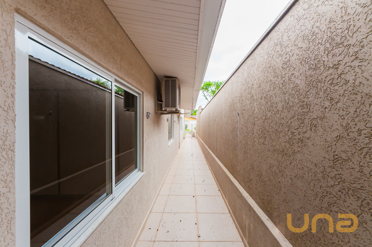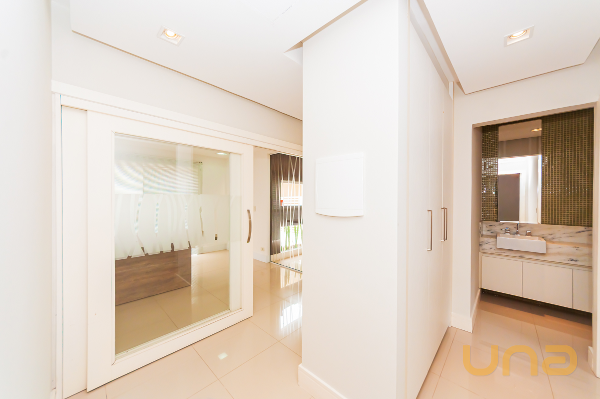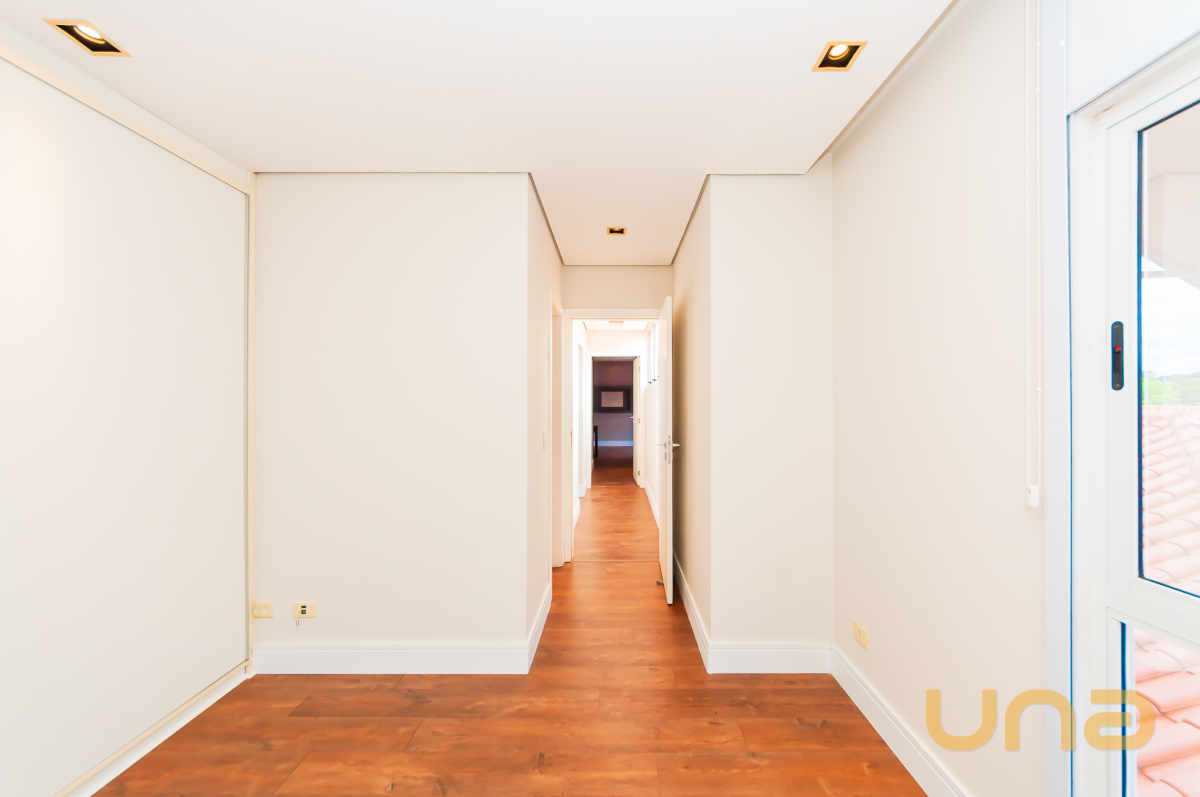 Residência térrea, desocupada, localizada na Planta Vila Romana (Associação de moradores), Av. Manoel Ribas, 8595 – bairro Santa Felicidade, com aproximadamente 270 m² (sendo 121,65 m² averbados ), distribuídos em 4 dormitórios (sendo 3 suítes – 2 no piso superior da edícula), salas de estar, jantar e tv, lareira a álcool, lavabo, banheiro social, ampla cozinha com armários planejados com bancada em pedra corian – branca e sem emendas, ar-condicionado, coifa, edícula em 2 pavimentos, no térreo lavanderia, um salão de festas com churrasqueira, bancada em inox, lavabo, espaço para um escritório com armários, e piso superior com as 2 suítes.