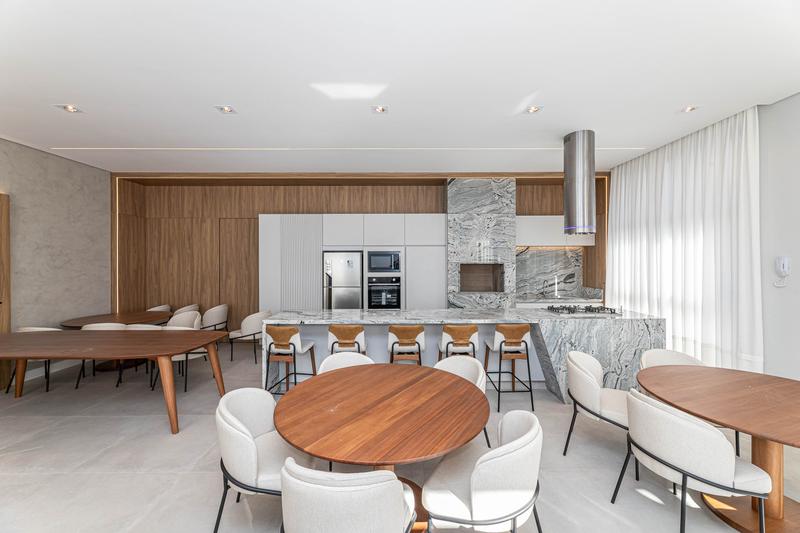 * Living, sala de jantar e cozinha integrados promovendo convivência e luminosidade natural.