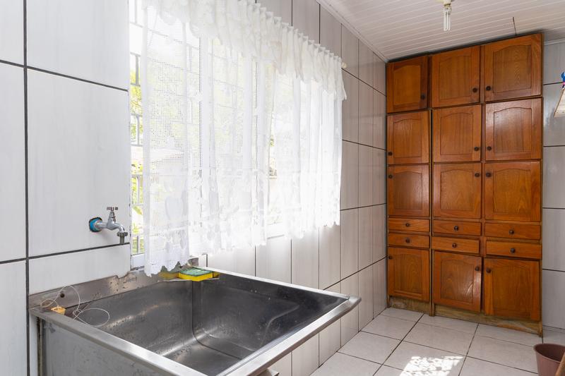 Área de serviço com tanque e armário, ideal para manter o ambiente sempre organizado.