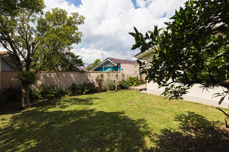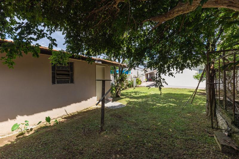 Jardim frontal e área nos fundos com árvores frutíferas, criando um ambiente agradável e acolhedor.
