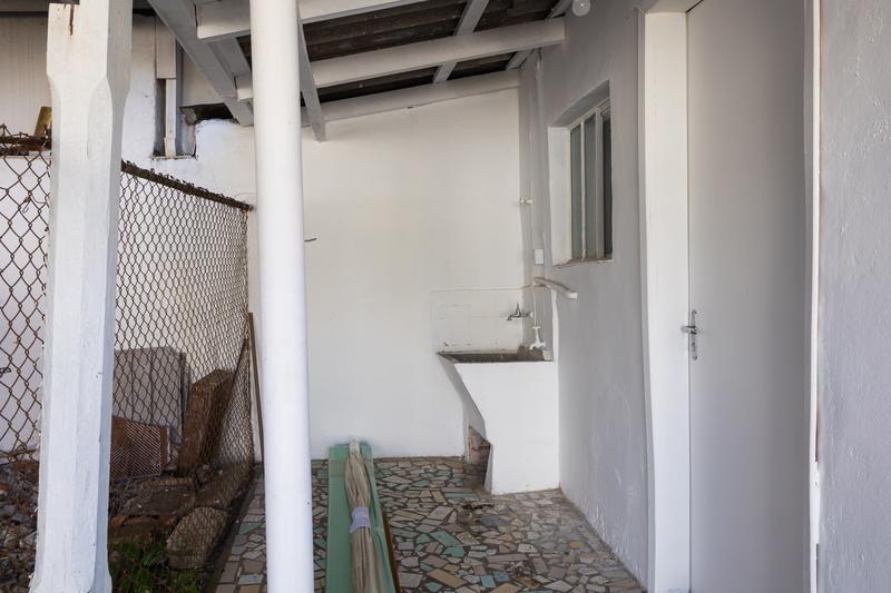 Área de serviço externa apresentando cobertura em eternit para suporte às demandas de higienização