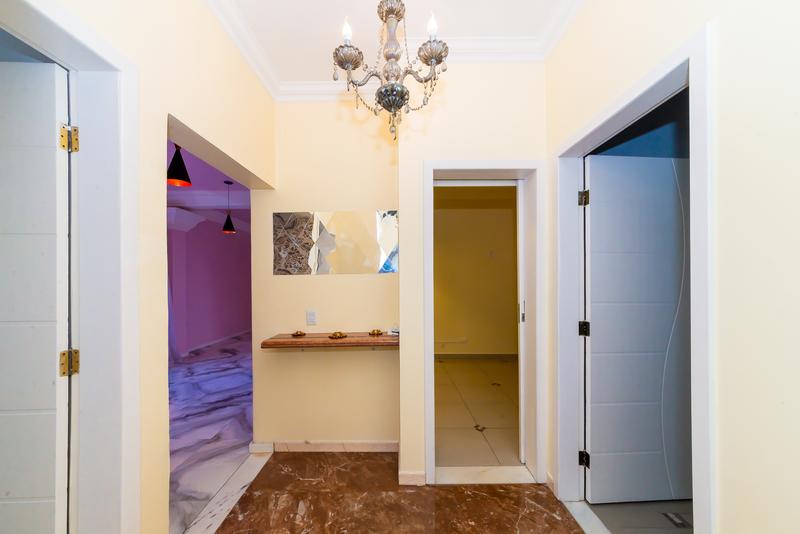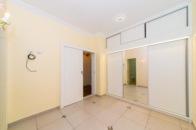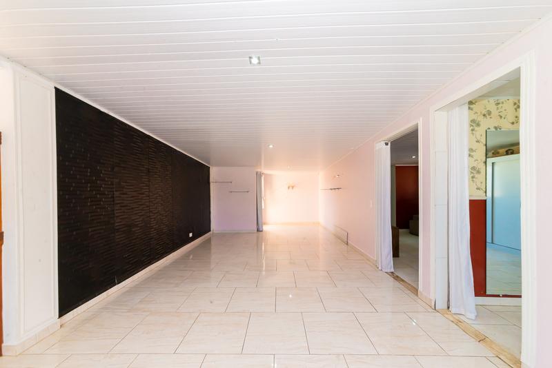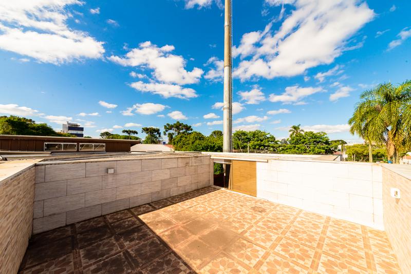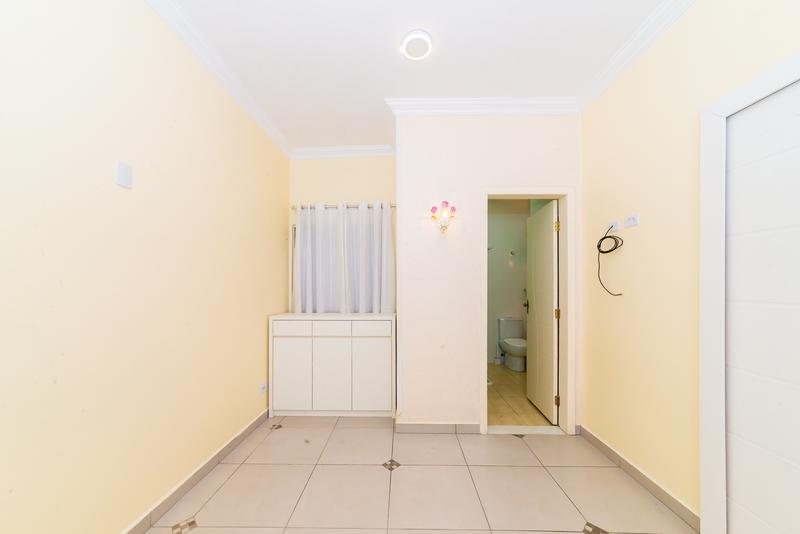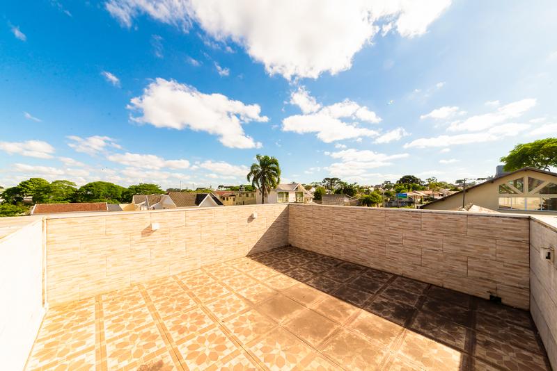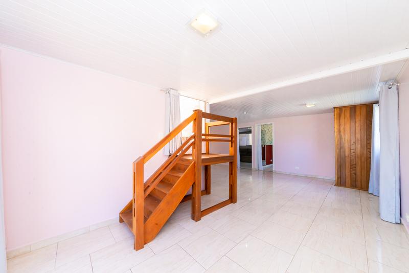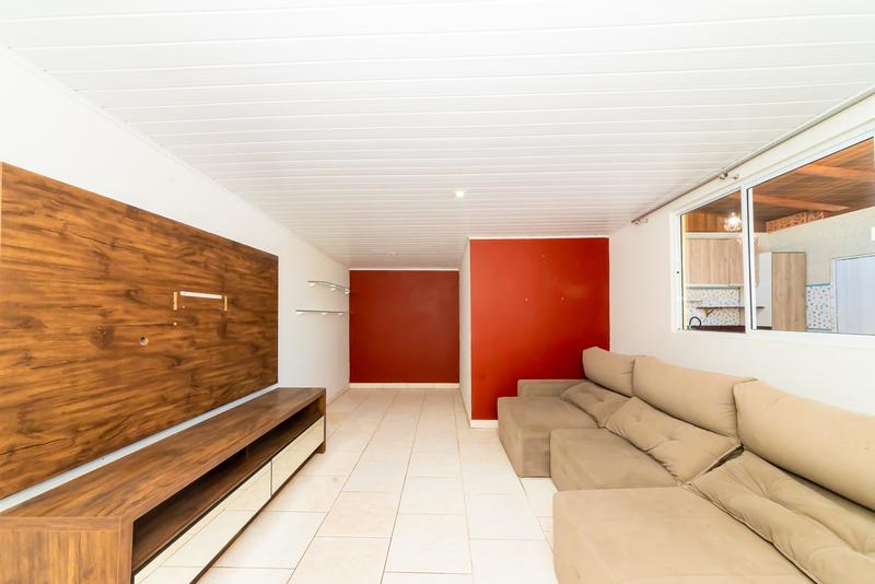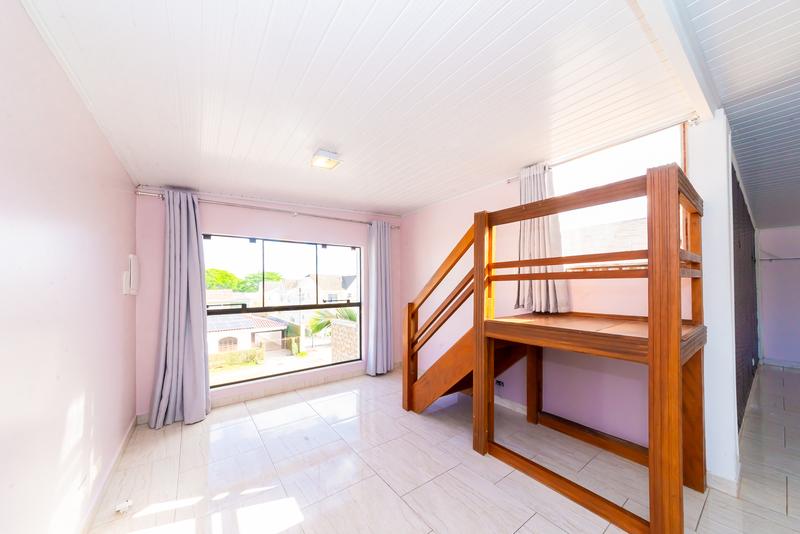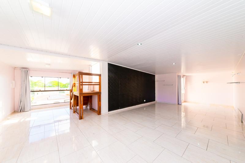 No pavimento superior, um diferencial marcante: cozinha gourmet com vista aberta, sala ampla com painel de TV, banheiro completo, quarto com armários e terraço privativo — um ambiente perfeito para lazer ou uso como suíte master alternativa.
