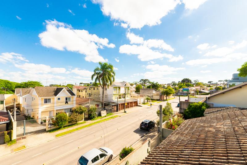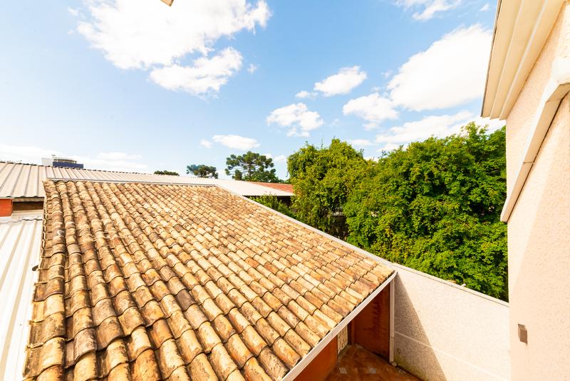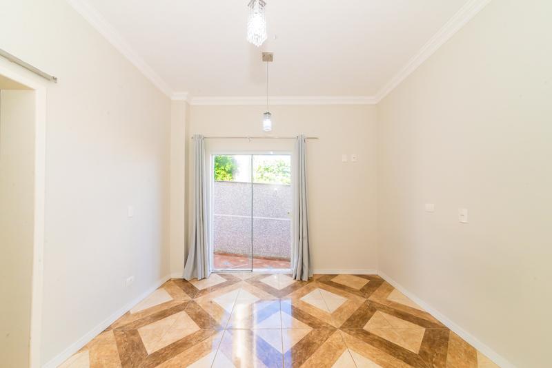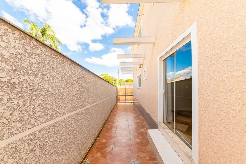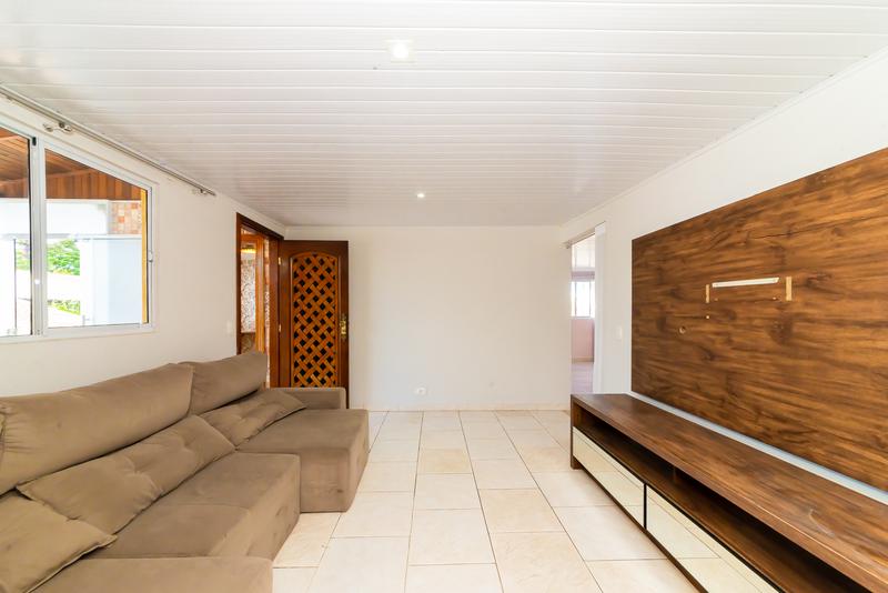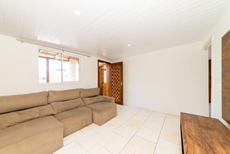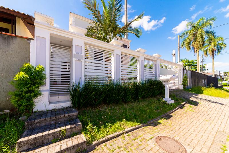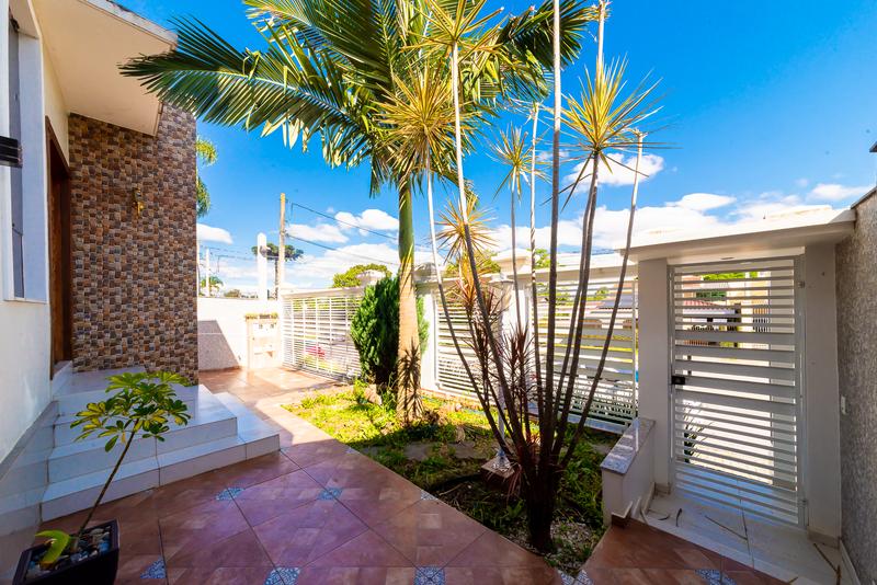 A casa oferece duas vagas de garagem descobertas e um jardim de inverno que traz leveza e integração com a natureza.