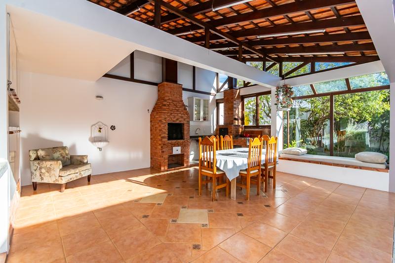 Além disso conta com uma edícula com detalhes em madeira de Itaúba, fogão a lenha, churrasqueira, quintal arborizado e o principal é que consegue guardar aproximadamente seis veículos.