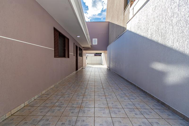 Casa térrea com três quartos e um amplo terreno localizado em rua sem saída.