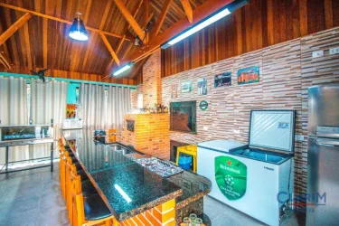 E além de tudo isso, conta com duas áreas que vão ganhar seu coração! Ao lado do tanque grande com diversos peixes, você encontra o salão de festas de verão! Aberto e em forma de octógono, com 100 m², tem churrasqueira, forno para pizza, fogão a lenha com forno, banheiro completo e depósito.