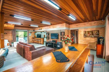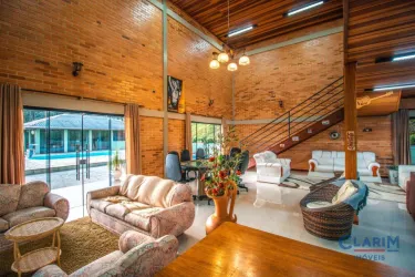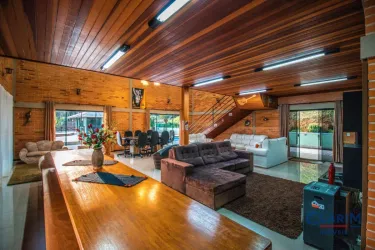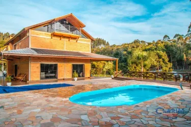 A casa sede com aproximadamente 540 m² possui três pavimentos, no primeiro andar você encontra as salas de estar e jantar em plano aberto e integradas com a cozinha, além da área de serviço. Conta com 4 quartos espaçosos, bem iluminados e arejados. No terceiro e último andar temos um ático que serve como área de lazer e descanso e proporciona uma vista linda do terreno e arredores. No primeiro pavimento, as portas-janelas te levam diretamente para a piscina, para seus dias de lazer.