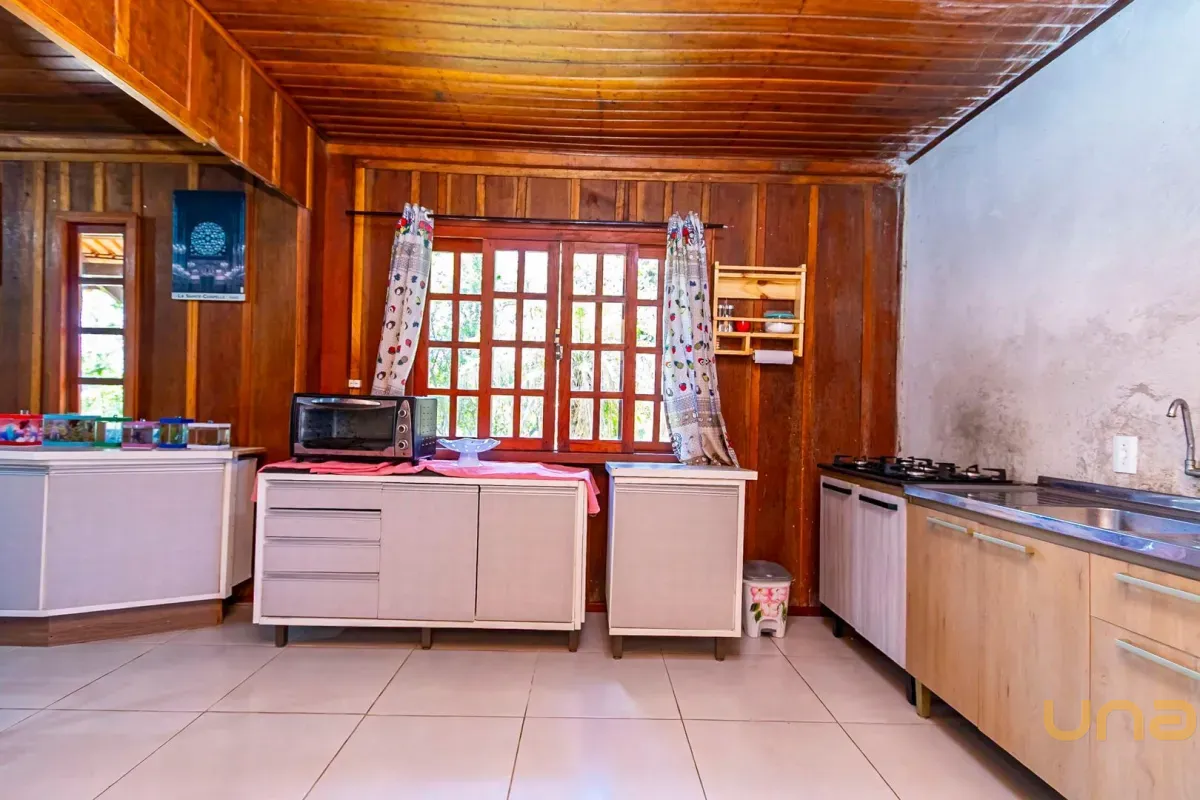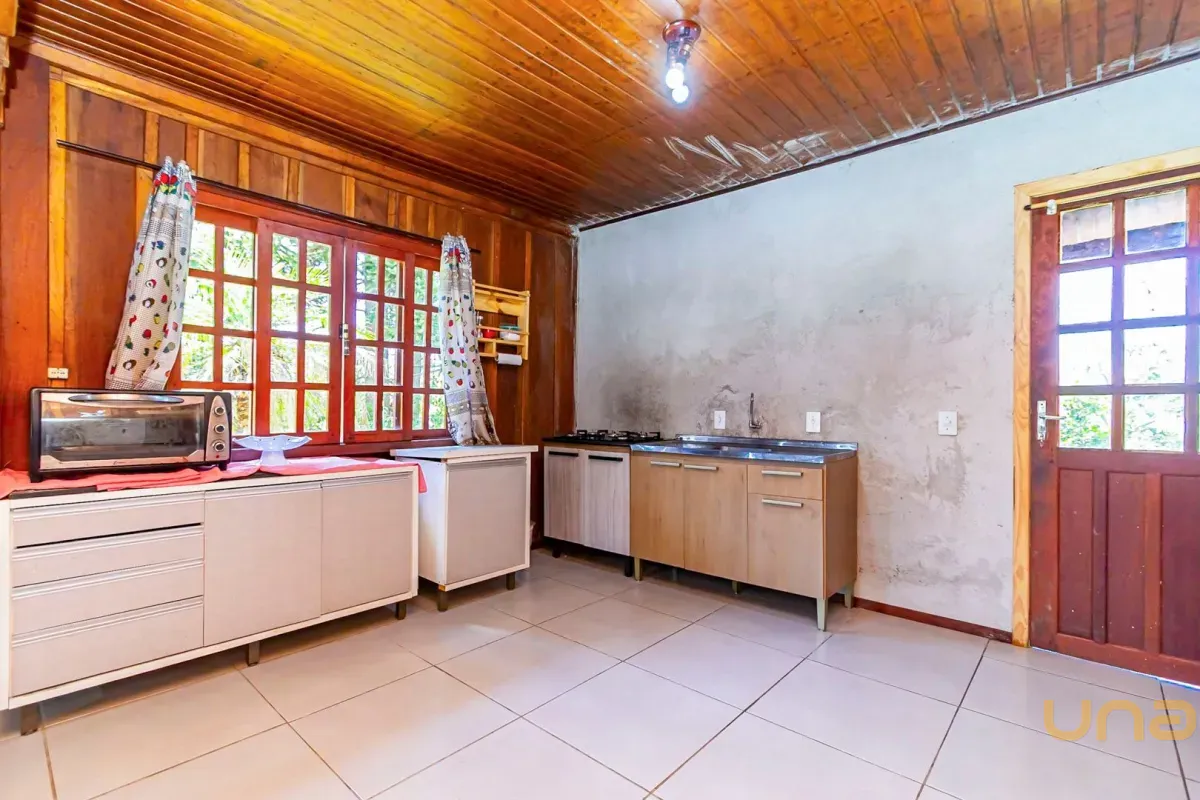 Casa com aprox. 115m² de madeira de lei, distribuídas da seguinte forma: