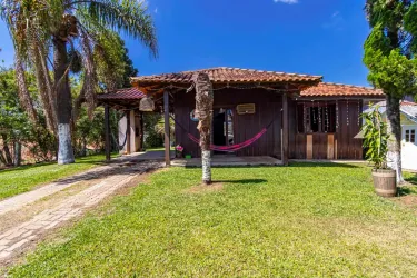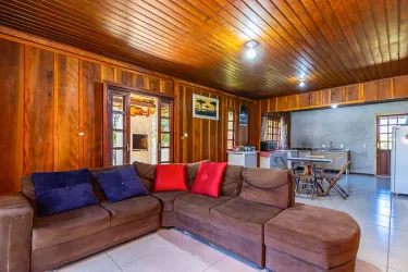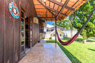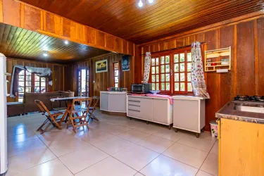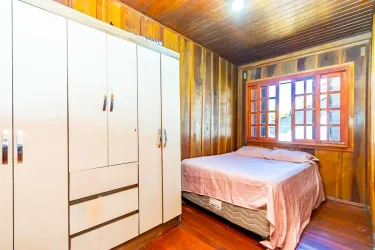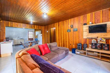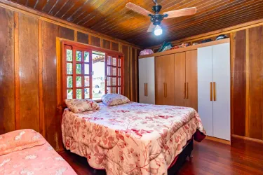 Casa com aprox. 115m² de madeira de lei, distribuídas da seguinte forma:
