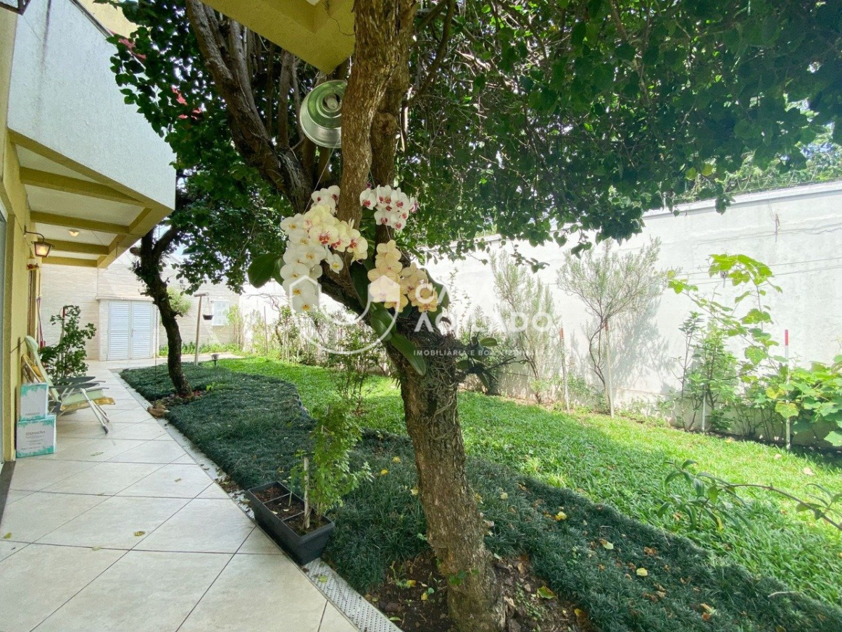 O imóvel é dividido em dois pavimentos, sendo o primeiro distribuído em hall de entrada com lavabo, sala de estar com lareira e porta de vidro com acesso ao jardim, sala de jantar é integrada com a de estar, cozinha com armários, geladeira, fogão com coifa e máquina de lavar louças, além da área de serviço, com banheiro e 01 quarto, que também pode ser usado com despensa, imóvel também conta com um espaço gourmet com churrasqueira.