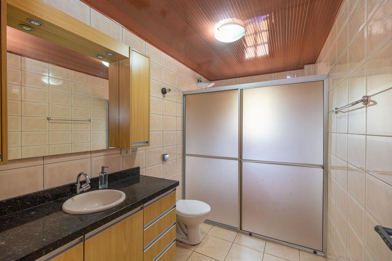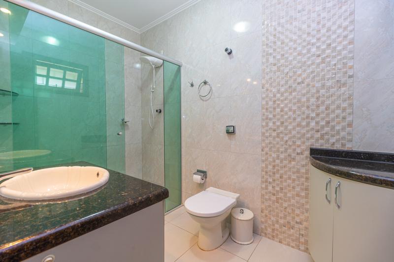 – Banheiro social com armário, espelho e box em blindex,