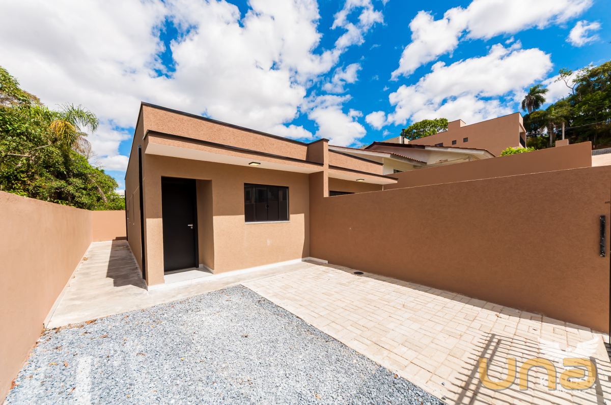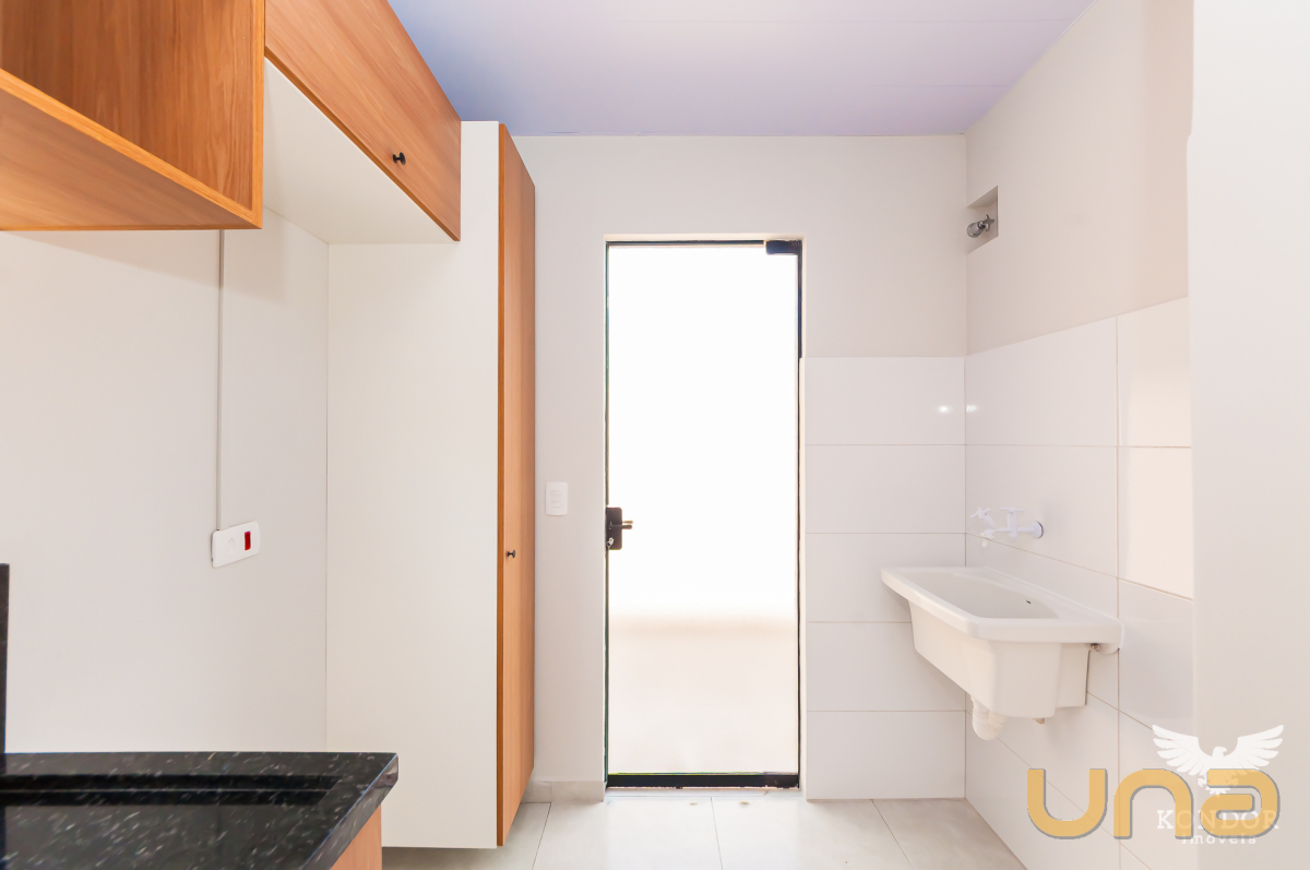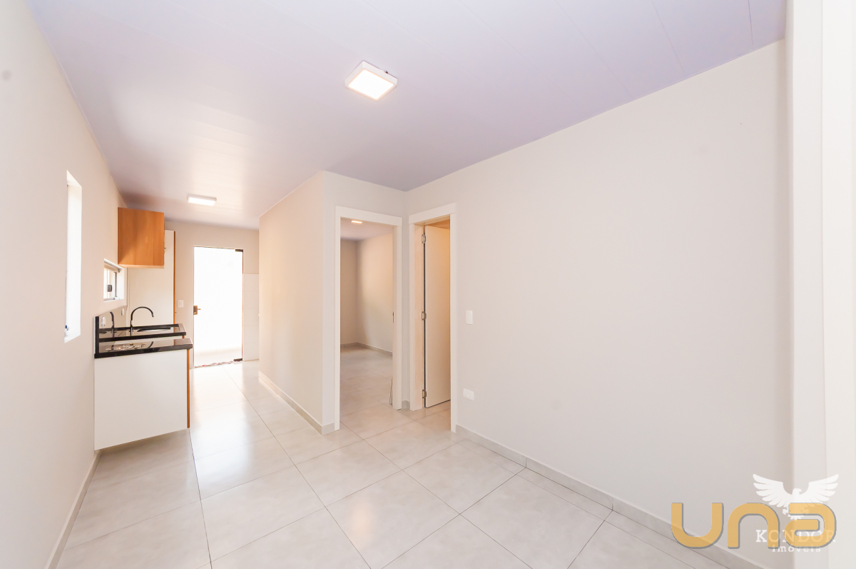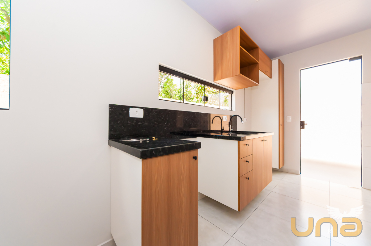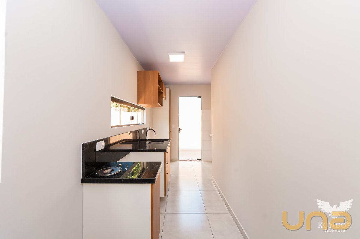 Residencia nova com 02 quartos, sala e cozinha (com armários) conjugados, banheiro social com box e armário, área de serviço, e 01 vaga de garagem descoberta. Imóvel com área livre de terreno na frente e fundos.
