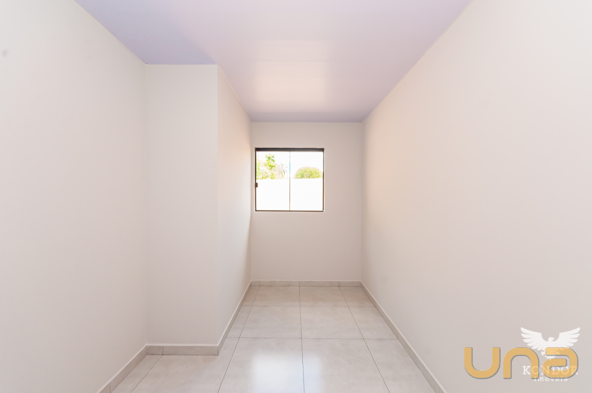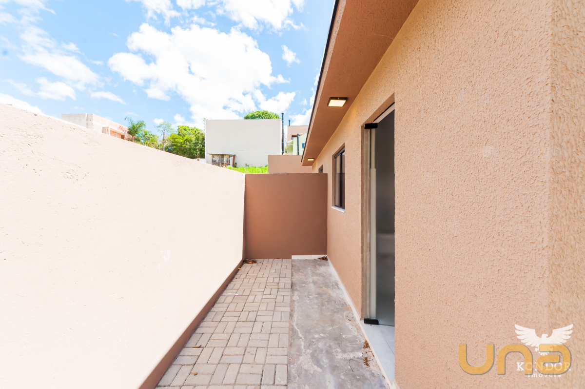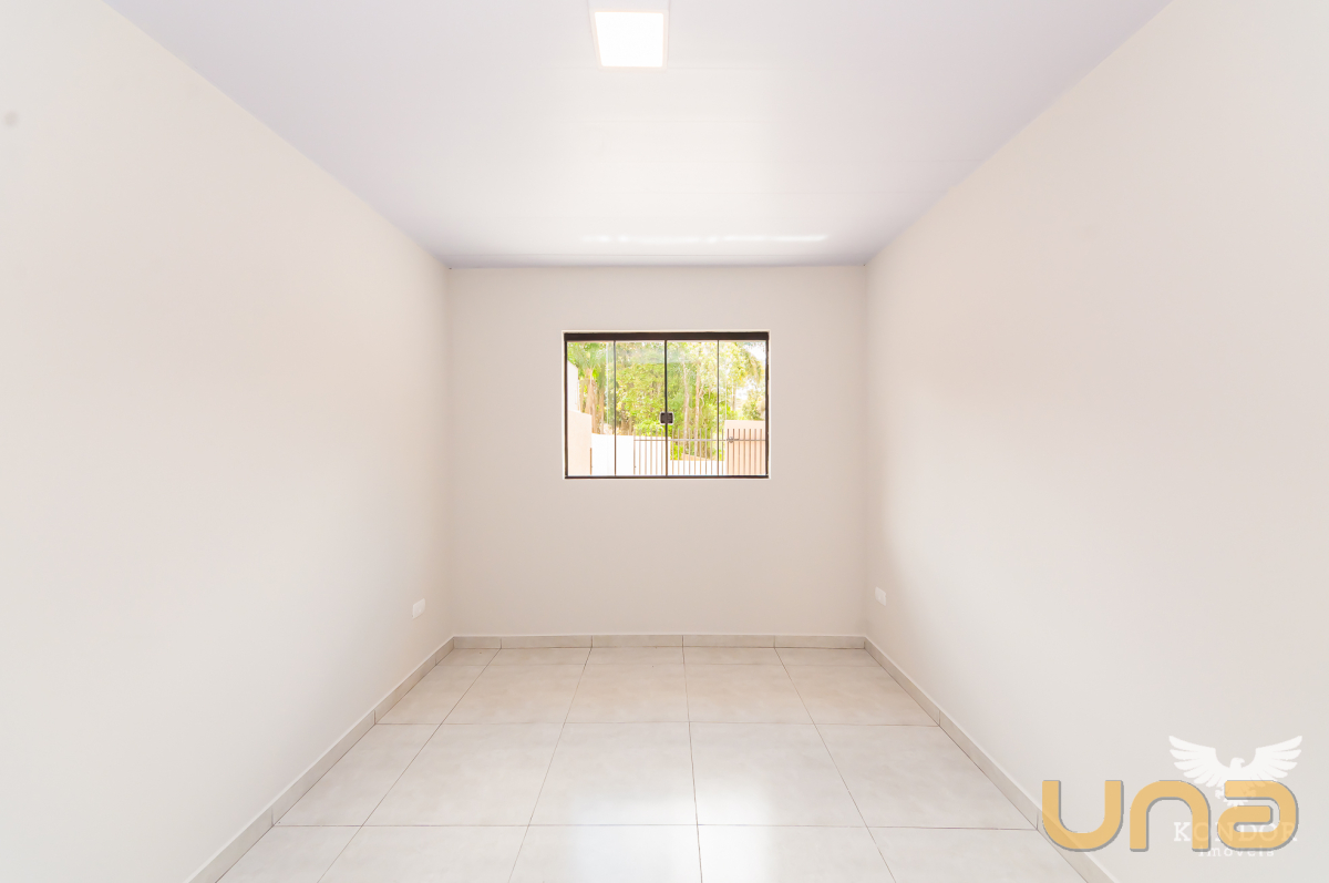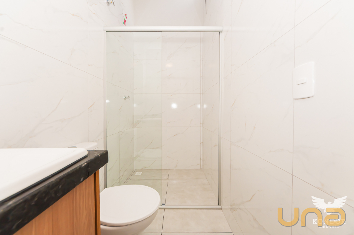 Residencia nova com 02 quartos, sala e cozinha (com armários) conjugados, banheiro social com box e armário, área de serviço, e 01 vaga de garagem descoberta. Imóvel com área livre de terreno na frente e fundos.