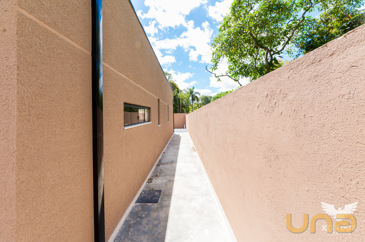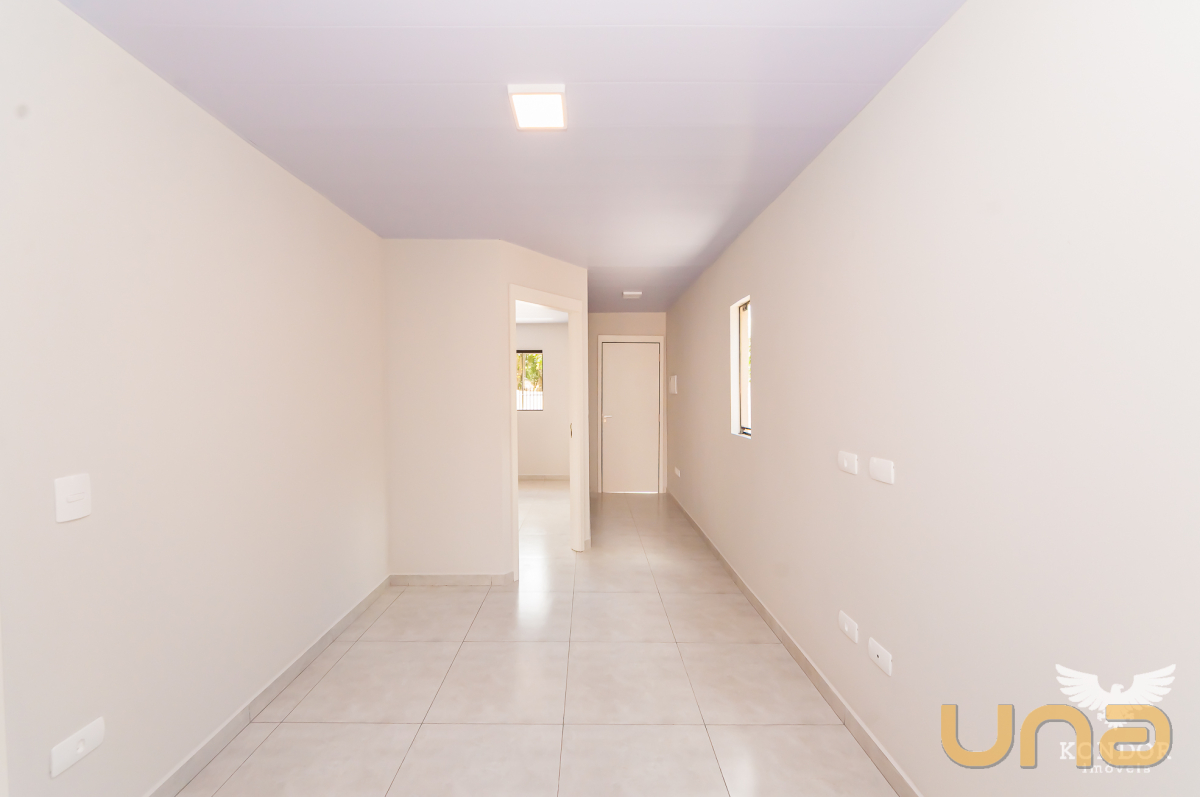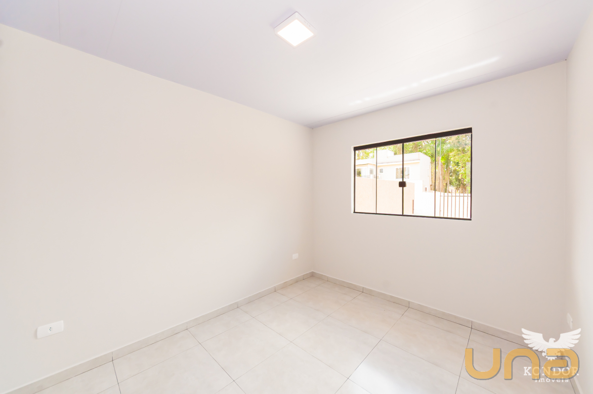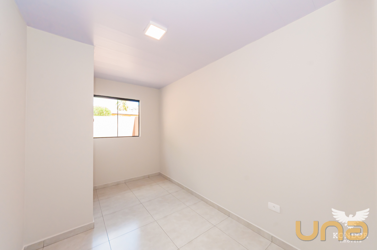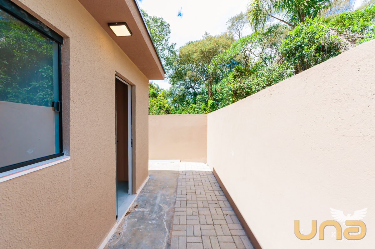 Residencia nova com 02 quartos, sala e cozinha (com armários) conjugados, banheiro social com box e armário, área de serviço, e 01 vaga de garagem descoberta. Imóvel com área livre de terreno na frente e fundos.