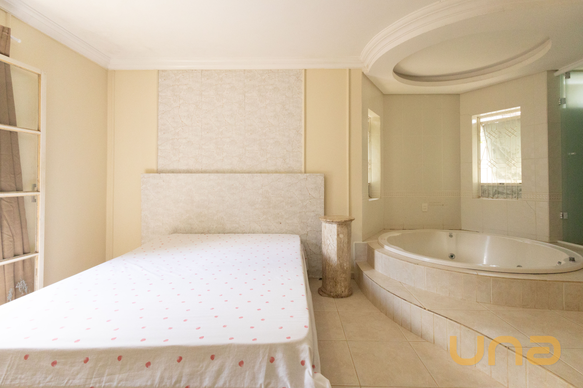 Casa térrea com aproximadamente 180m², localizada em uma rua tranquila e sem saída, a 5,6 km da International School of Curitiba e a 5,1 km da Avenida Fredolin Wolf.