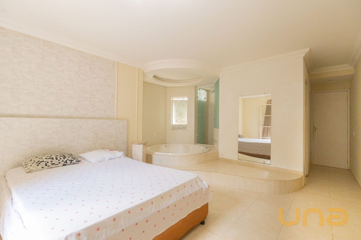 O imóvel conta com 03 dormitórios, sendo uma suíte com hidromassagem, cama e closet; 01 quarto com bicama e outro com cama de casal. Possui sala ampla com sofá e rack, lavabo, cozinha com armários planejados, cooktop e forno, área de serviço, depósito, quintal, jardim, 01 vaga coberta e aproximadamente 04 vagas descobertas.
