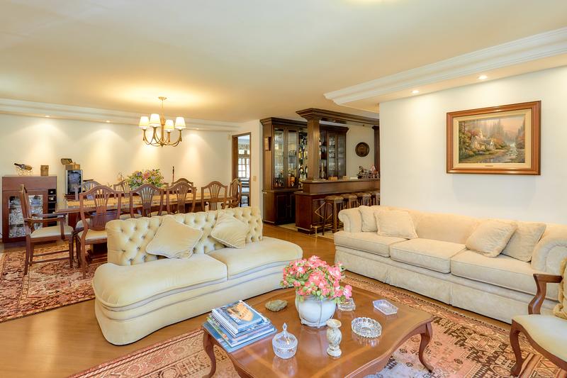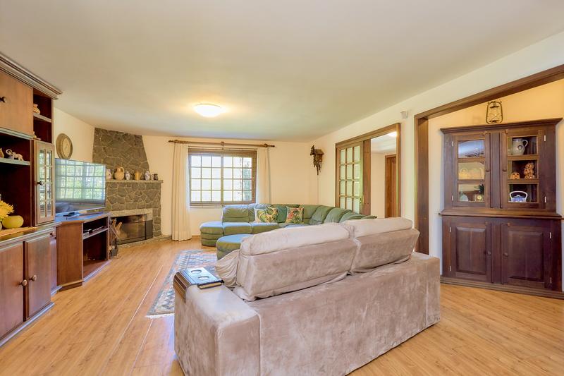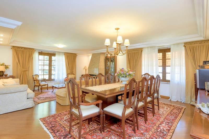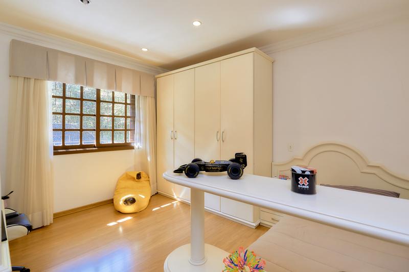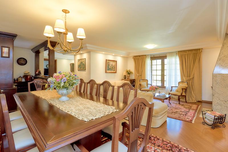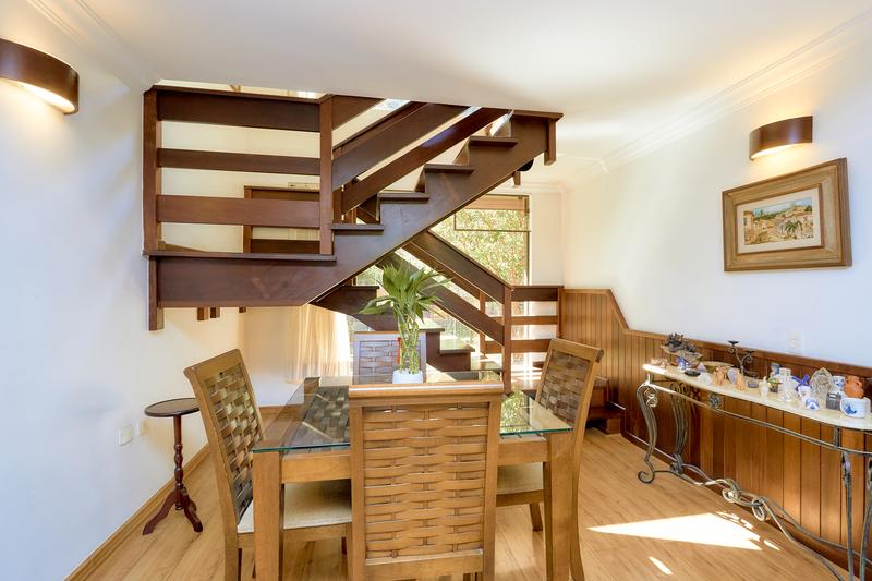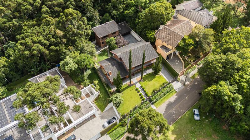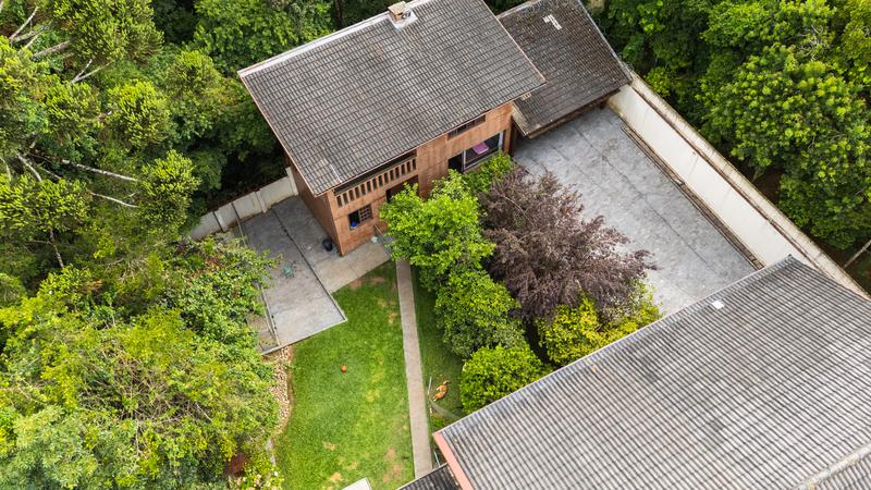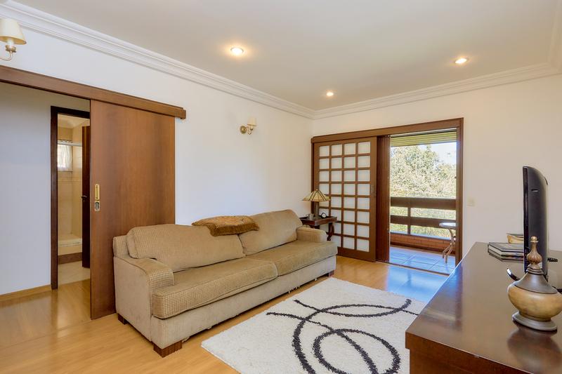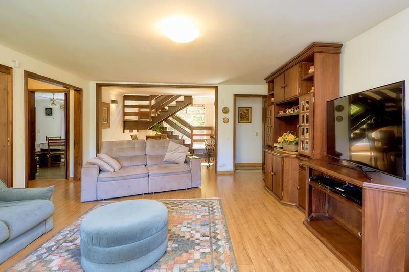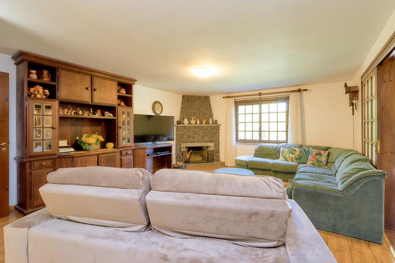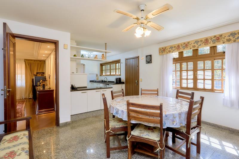 Casa principal com uma ampla sala para dois ambientes, bar e lareira à lenha, lavabo, sala íntima, cozinha com copa e área de serviço; Subindo temos uma sala de TV, 3 quartos sendo uma ampla suíte com closet, 2 Demi suítes. Segunda casa também dois pavimentos com vaga coberta para dois carros, salão com churrasqueira e loft com banheiro. Construções não averbadas.