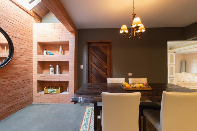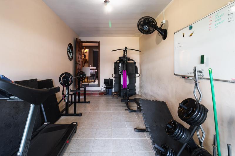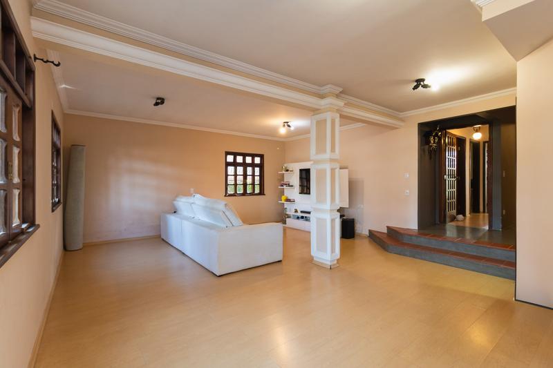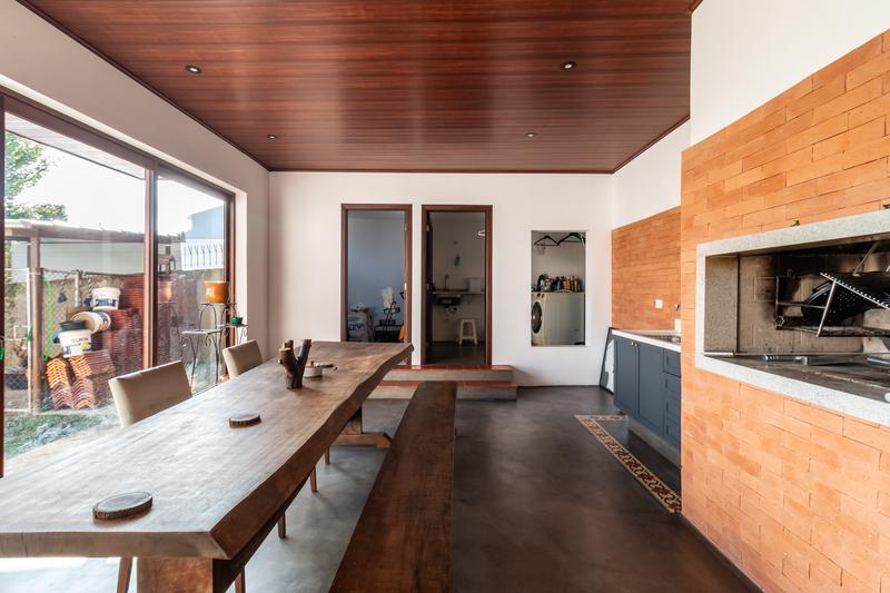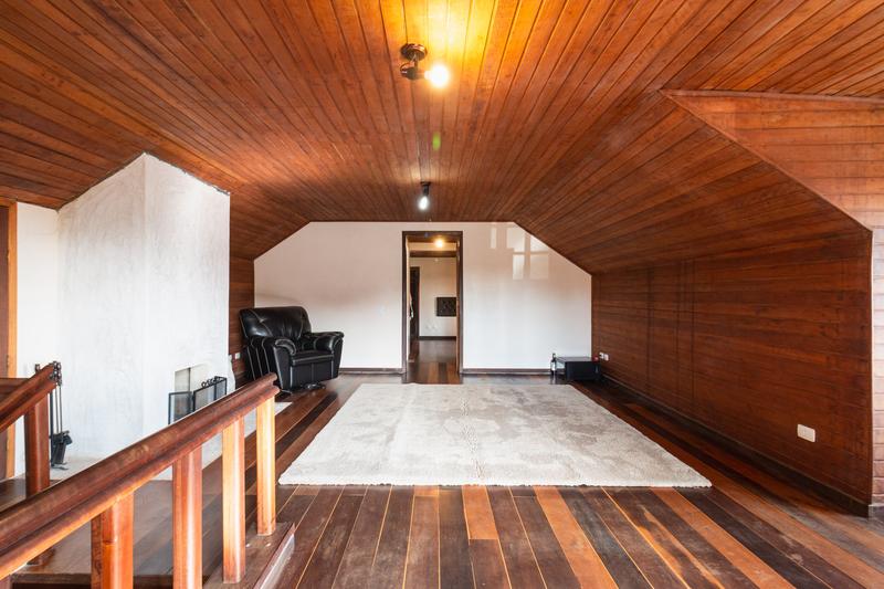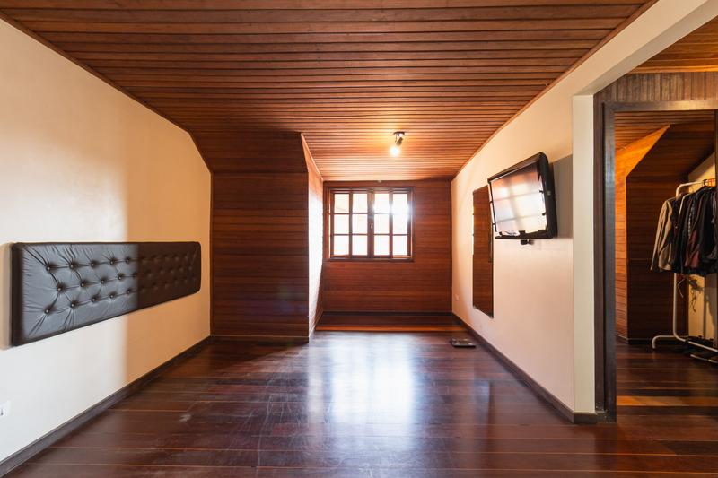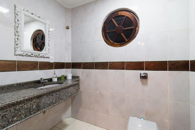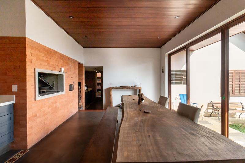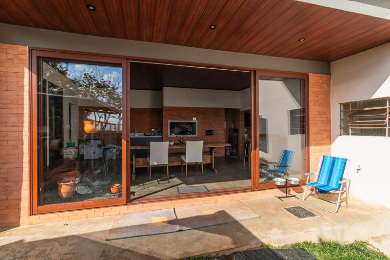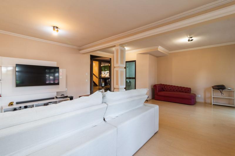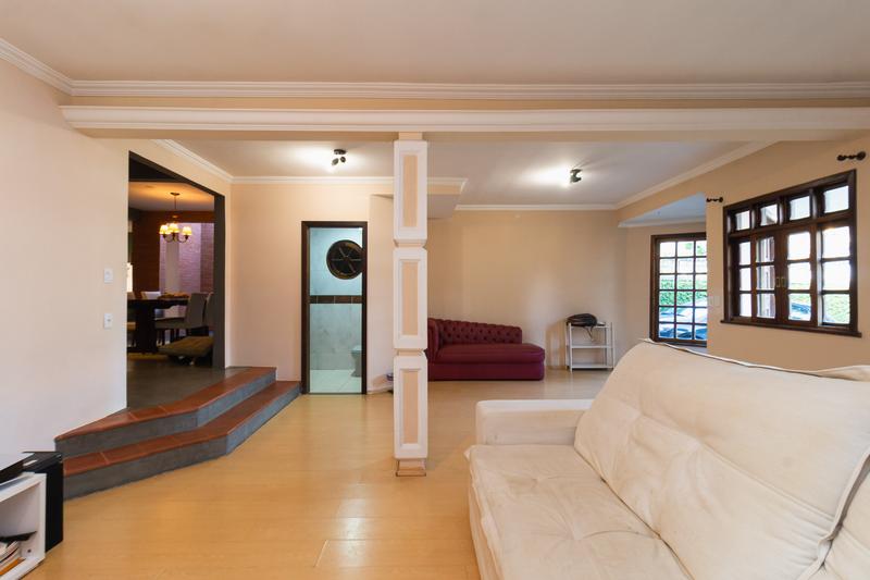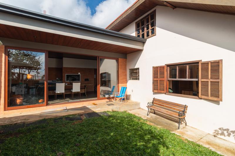 Casa em 2 pavimentos, sendo no térreo: ampla sala para 2 ambientes, lavabo, sala de jantar, a garagem foi transformada em uma pequena academia, 2 quartos, cozinha toda com armários e pedras de silestone brancas, fogão de indução, área gourmet (ampliação de 30m²) com churrasqueira, forno de pizza, pia, armários, despensa, área de serviço e canil. Na parte superior, mais uma sala ampla com lareira, sacada, um quarto com banheiro (suíte).