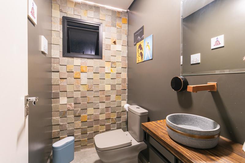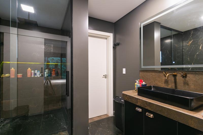 Piso superior: mezanino, 2 demi-suítes, ambas com sacada, piso do banheiro é aquecido.