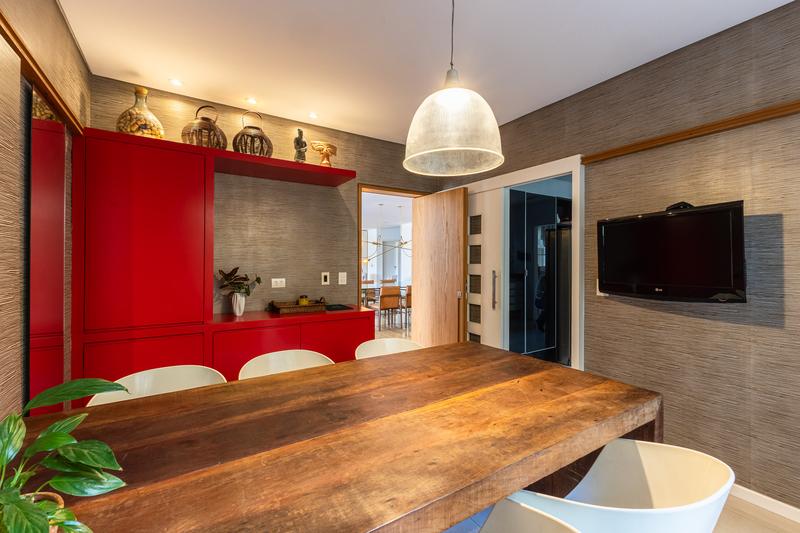 A infraestrutura do imóvel inclui alarme, aquecimento a gás, ar condicionado em todos os quartos e na sala de home theater, além de 4 vagas de garagem livres, sendo 2 cobertas e 2 descobertas.