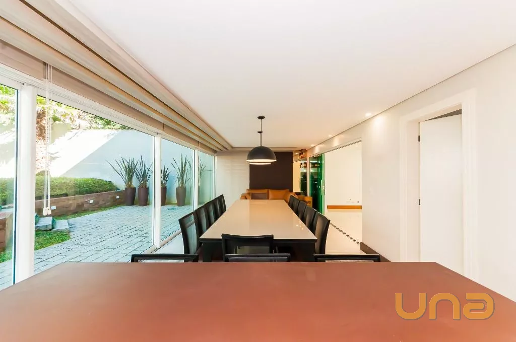 Pavimento Térreo: Linda sala toda projetada, com vidros para obter toda luz e claridade do sol, lavabo, escritório com calefação, sala íntima, jardim, cozinha, área de serviços, ampla churrasqueira com banheiro.