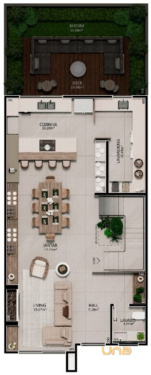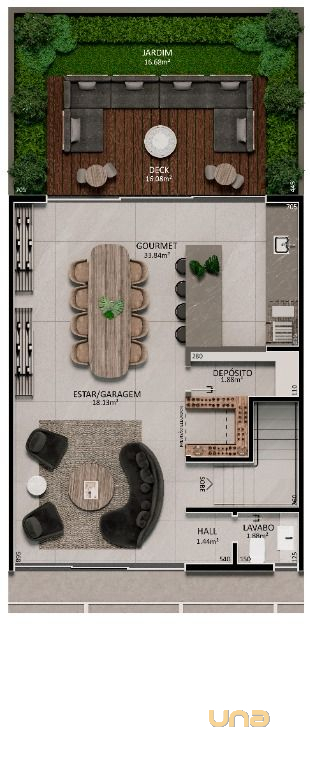 Com 295 m² de área privativa, esta unidade oferece quatro suítes espaçosas, projetadas para otimizar o conforto e a integração dos ambientes.