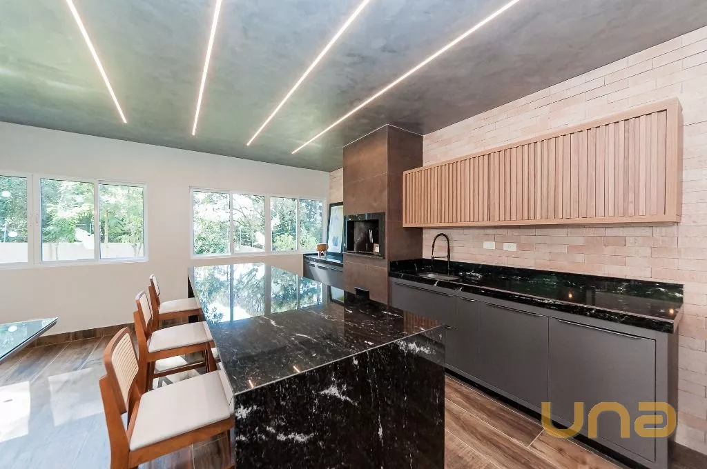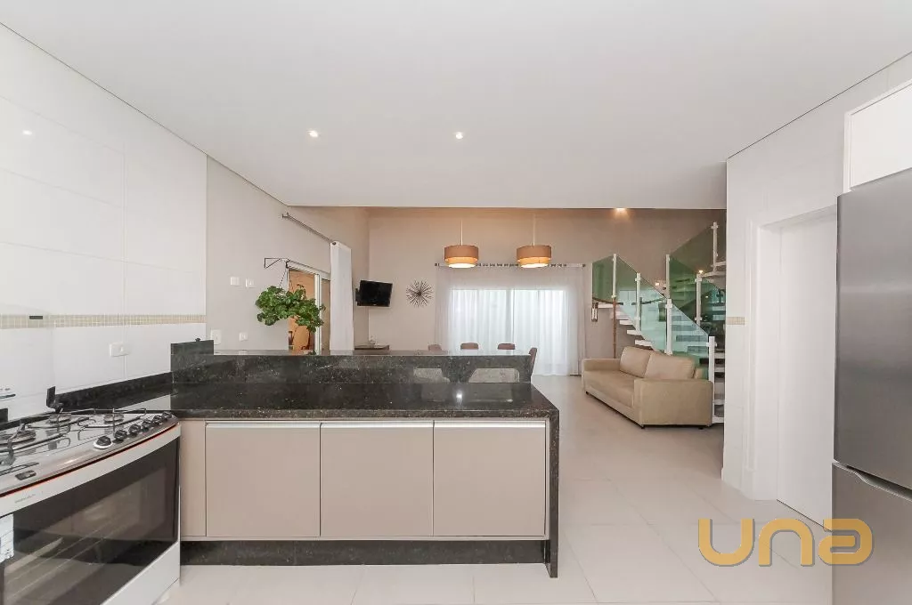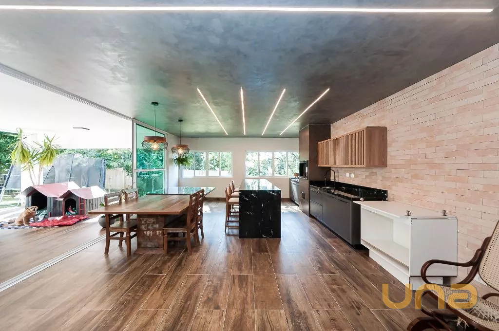 – Ampla cozinha com armários integrada com a sala de jantar.