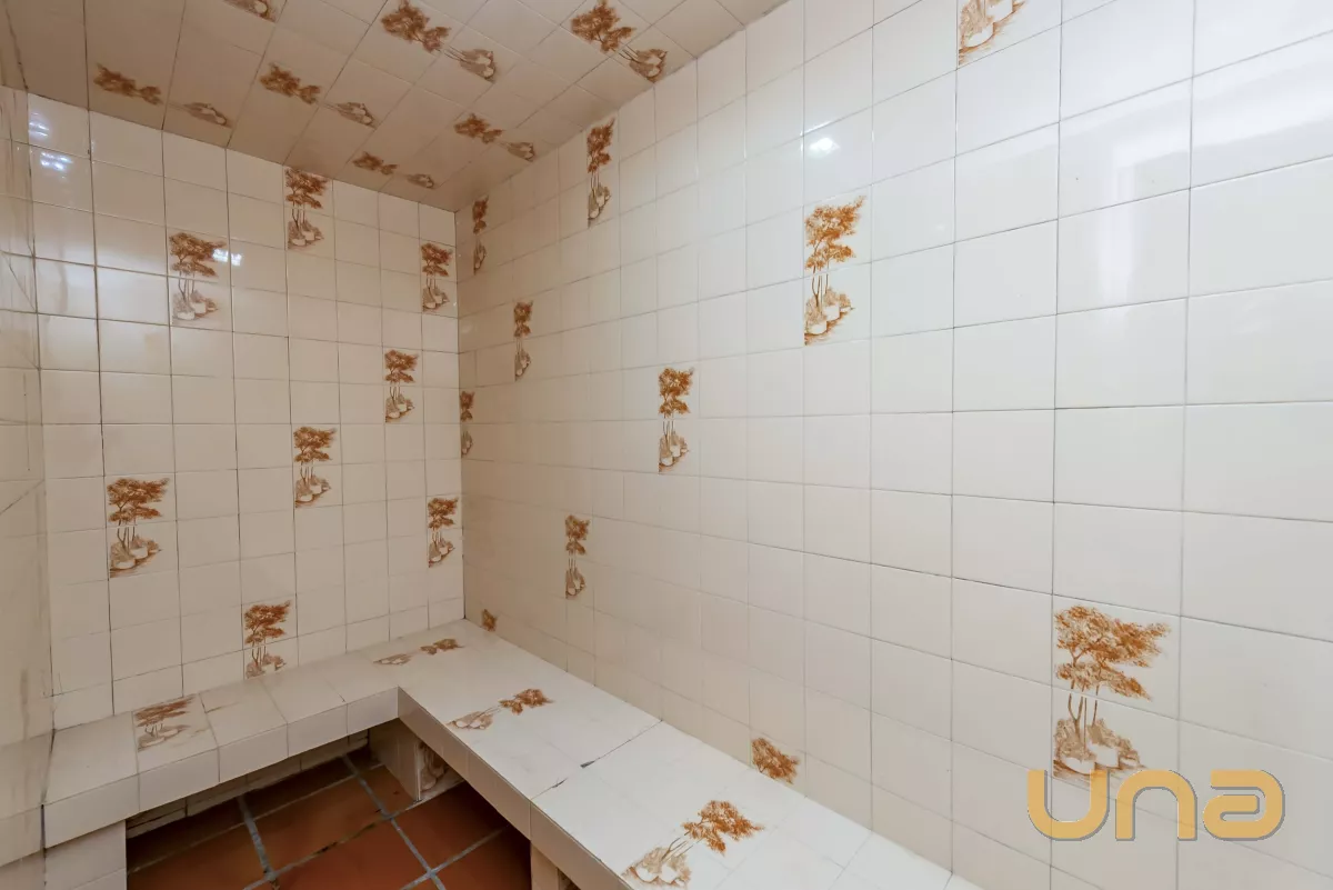 Amplo salão de festas com churrasqueira, sauna, ducha em separado e bwc