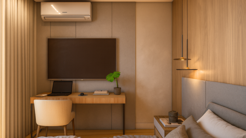 Padrão diferenciado de acabamentos, infra estrutura pronta para ar condicionado, portas Pormade laqueadas, porta de entrada em ACM, escadas e pias dos banheiros em mármore branco Paraná, todos os forros em drywall com cortineiros, entregue com iluminação em led pronta.