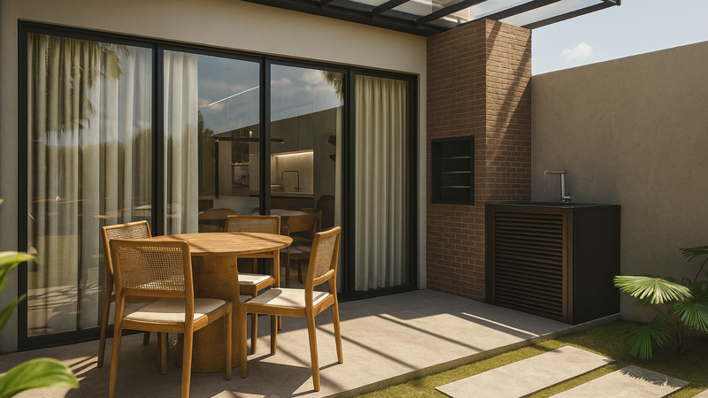 Além disso, a casa conta com um amplo quintal gramado e um terraço que oferece uma vista exterior deslumbrante para o verde, ideal para relaxar após um longo dia. A garagem coberta com capacidade para dois veículos, depósito e a lavanderia completam as facilidades que tornam este imóvel ainda mais prático.