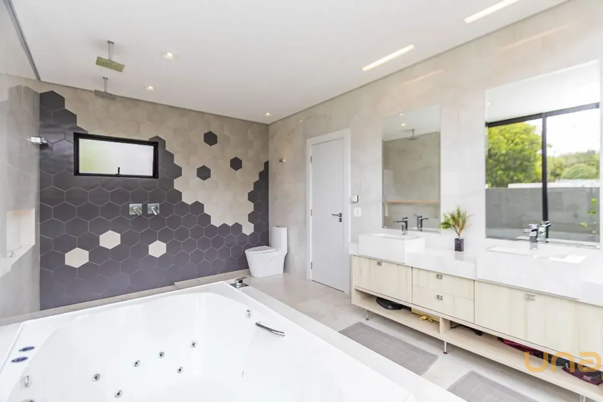 ** No lado oposto à cozinha, acesso a estar íntimo que atende a três grandes suítes com closet e BWC. A suíte do casal dispõe de maiores dimensões, inclusive com enorme closet e banheiro completo com cubas e duchas duplas, hidromassagem e jardim com amplas janelas e muro dando privacidade.