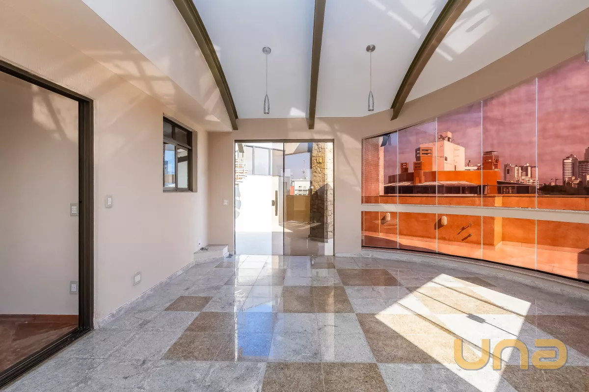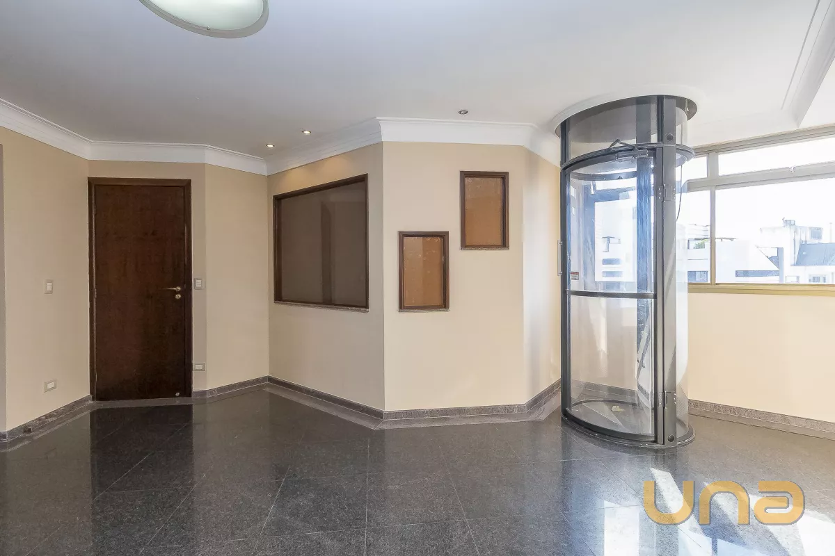 Cobertura triplex com elevador exclusivo, 4 suítes, em rua tranquila e com linda vista da cidade.