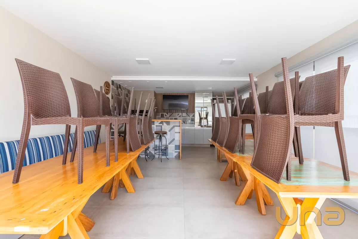 Amplo espaço gourmet com churrasqueira e forno a lenha.