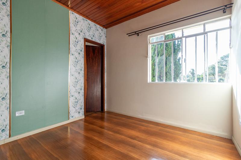 Piso cerâmico na casa e piso de cimento no barracão, resistentes e fáceis de manter, ideais para ambientes de alto uso.