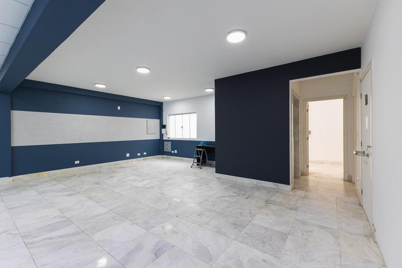 Salas amplas apresentando acabamento em piso granito para ambientes corporativos refinados