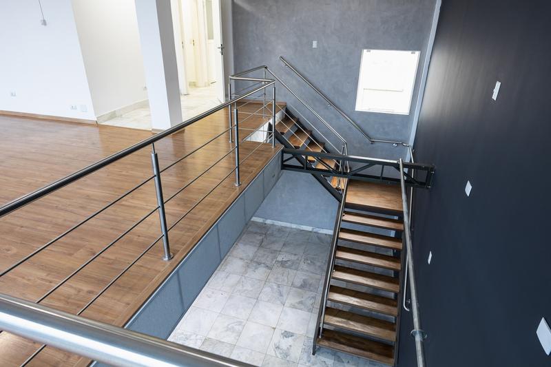 Mezanino estruturado com piso laminado e preparação técnica para instalação de ar condicionado