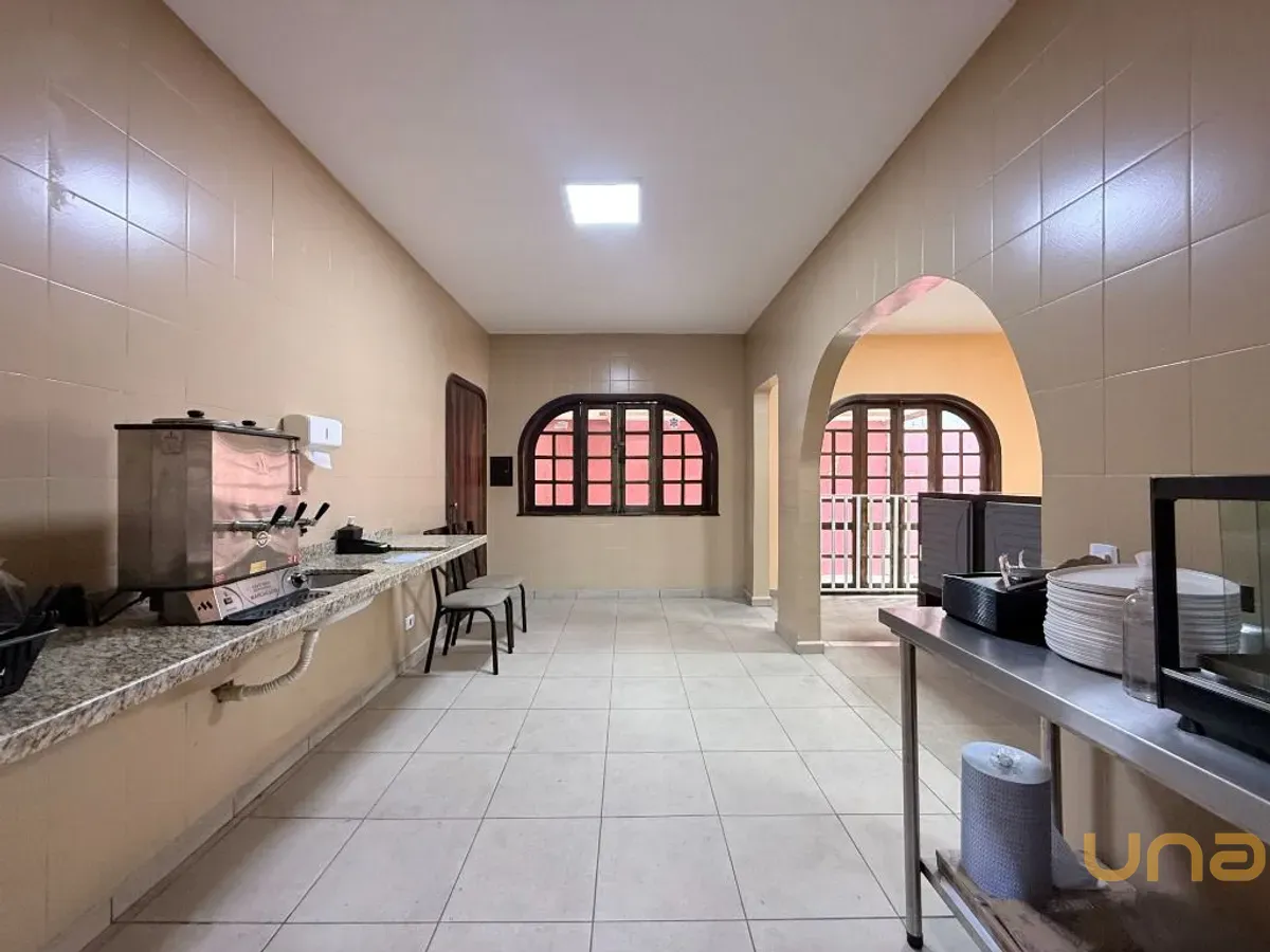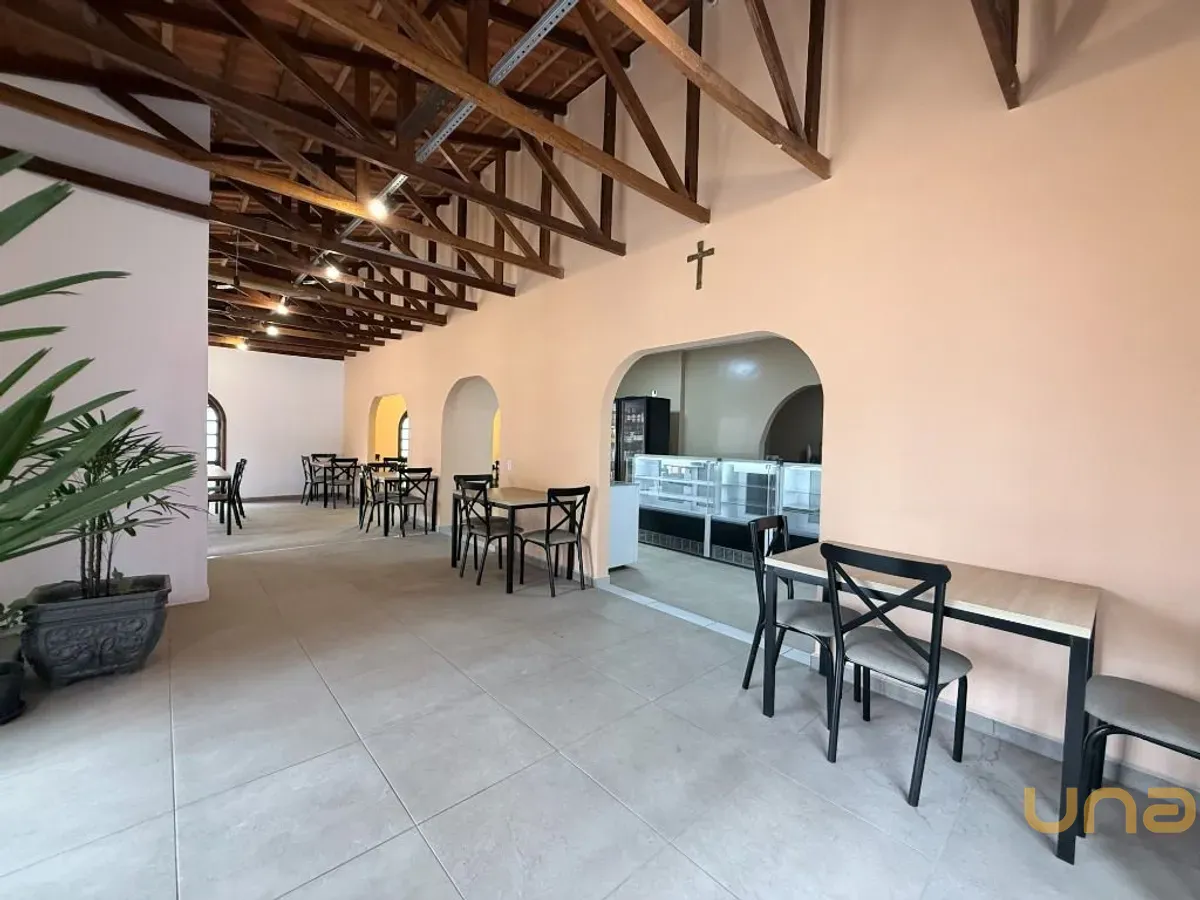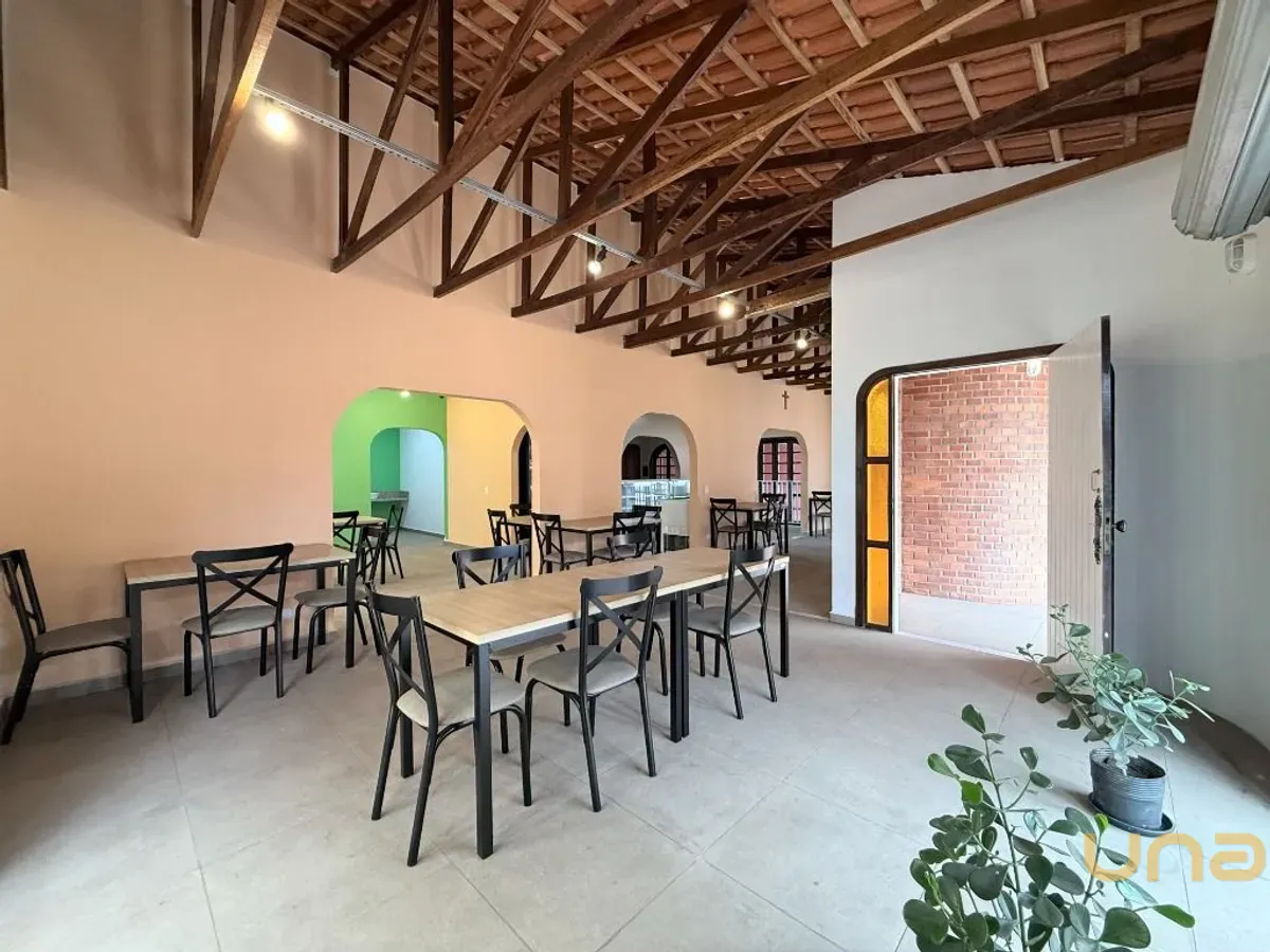 Salão com 141,00m² e mais 6 salas, 4 banheiros, cozinha, escritório, recepção, depósito, churrasqueira, 8 vagas de garagem/estacionamento, espaço externo com quintal.