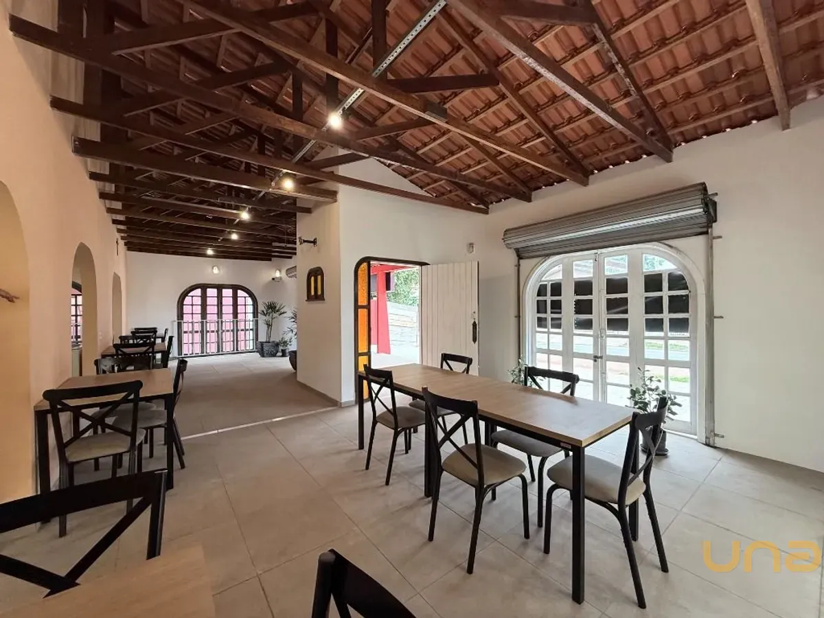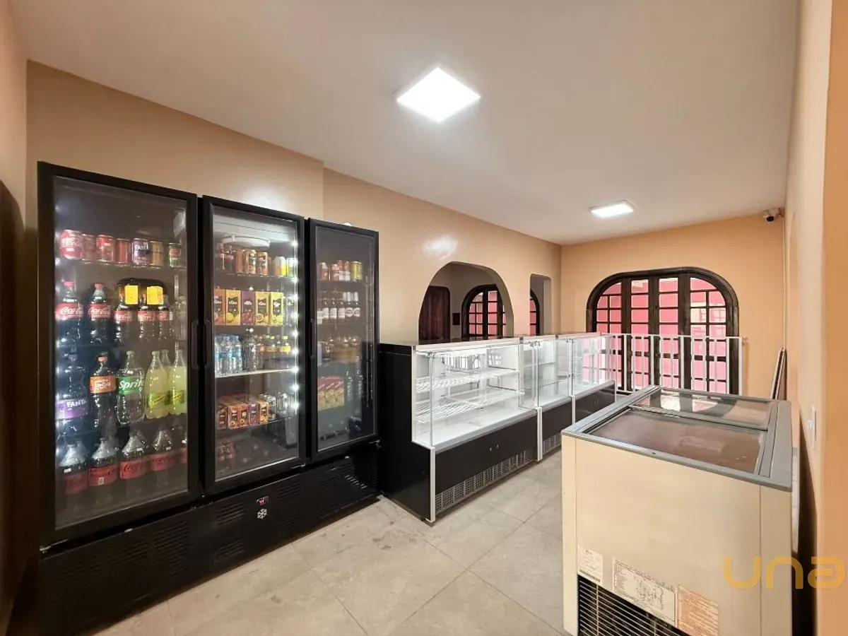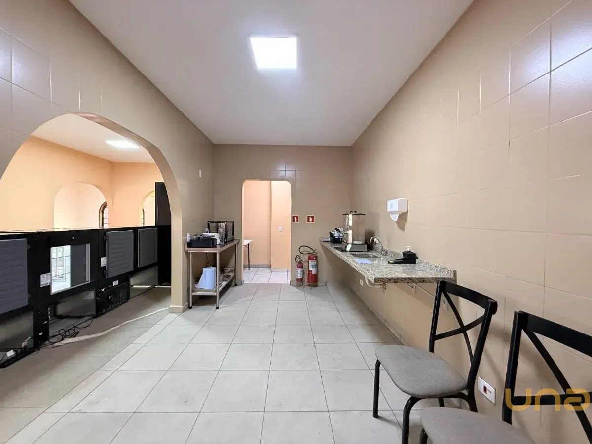 Salão com 141,00m² e mais 6 salas, 4 banheiros, cozinha, escritório, recepção, depósito, churrasqueira, 8 vagas de garagem/estacionamento, espaço externo com quintal.