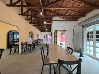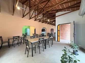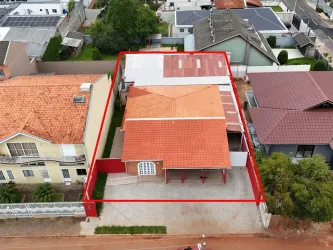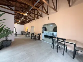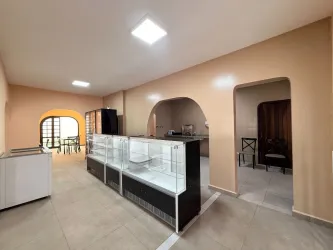 Salão com 141,00m² e mais 6 salas, 4 banheiros, cozinha, escritório, recepção, depósito, churrasqueira, 8 vagas de garagem/estacionamento, espaço externo com quintal.