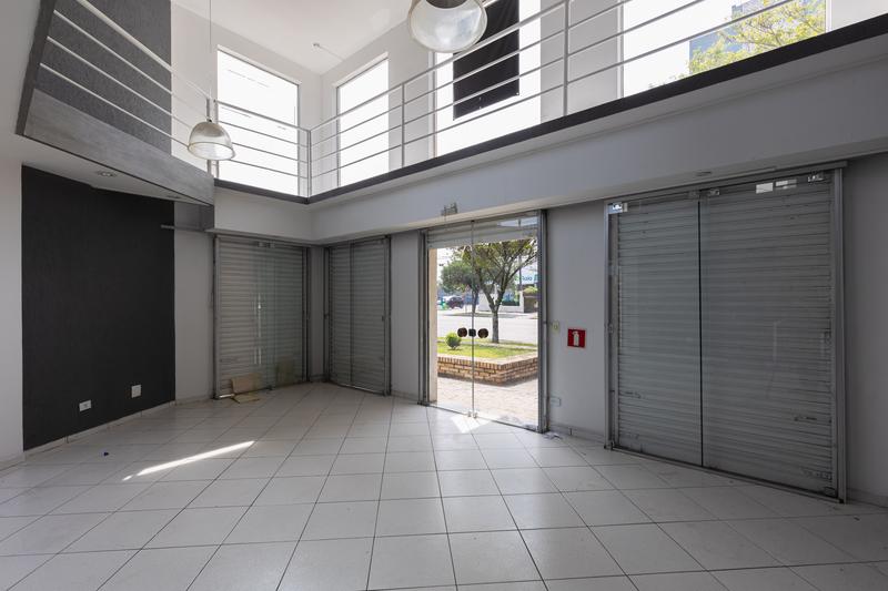 Loja envidraçada com quatro portas de aço