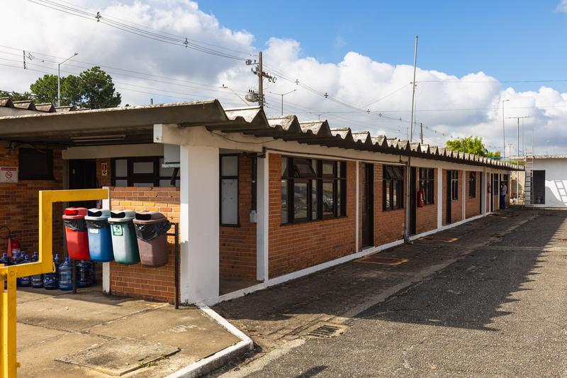 01 Banheiro de uso coletivo equipado com vaso sanitário e pia para suporte operacional