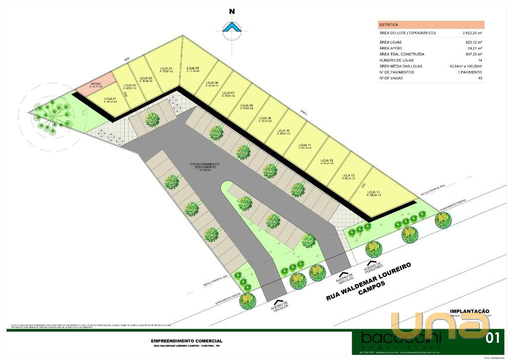 O empreendimento contará com aproximadamente 823 m² de área construída, distribuídos em 14 lojas de diferentes metragens, ideais para negócios dos mais variados segmentos.