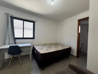 – Sala, Quarto e Cozinha conjugados com Sofá Cama, Mesa de Escritório com Cadeira.